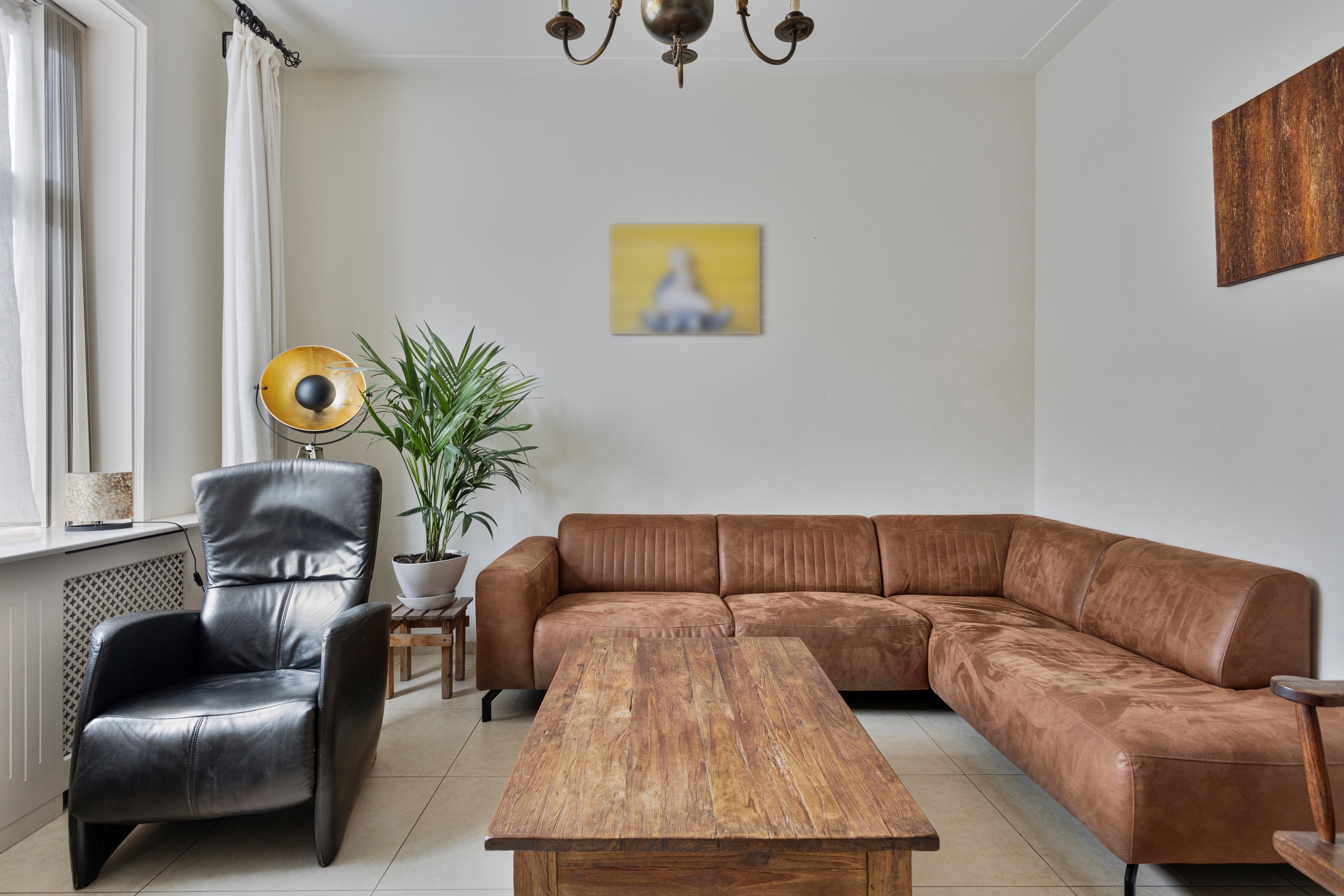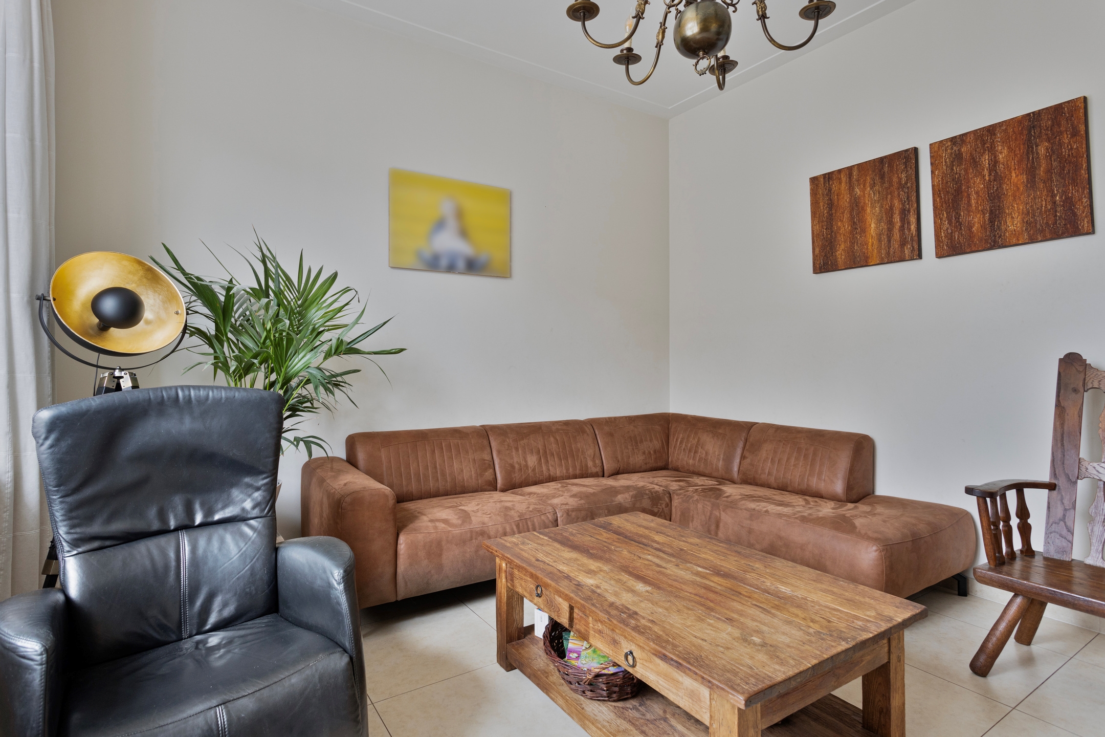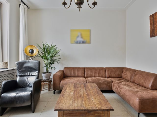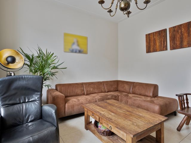 Bij binnenkomst in de woonkamer wordt u direct verwelkomd door een overvloed aan ruimte en licht. De vloer is afgewerkt met vloertegels en de wanden zijn strak gestuct, wat zorgt voor een nette en tijdloze uitstraling.