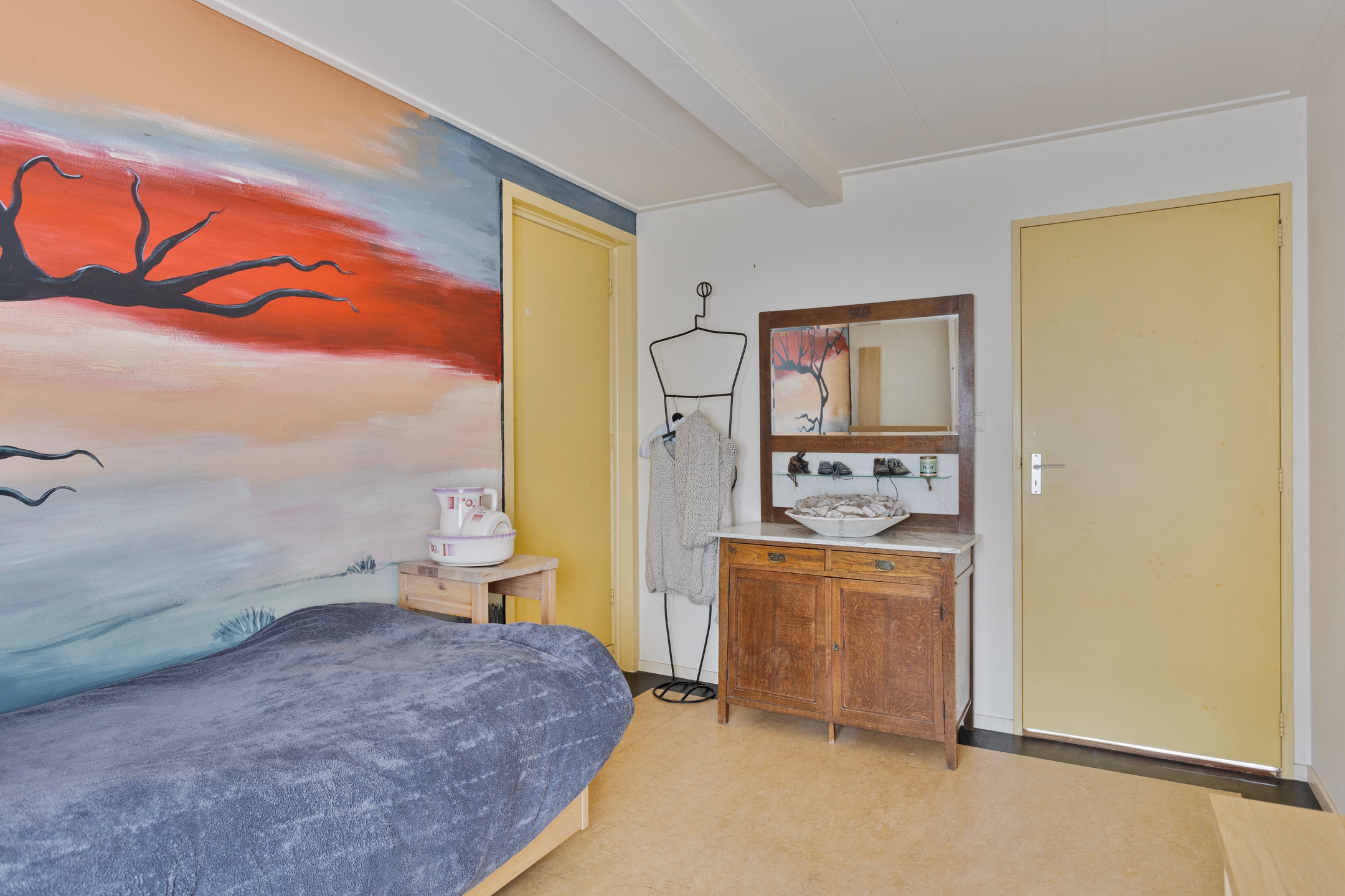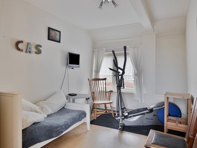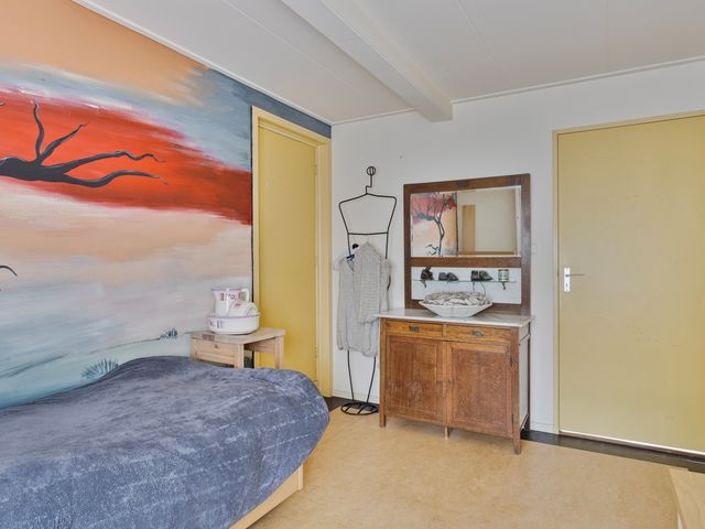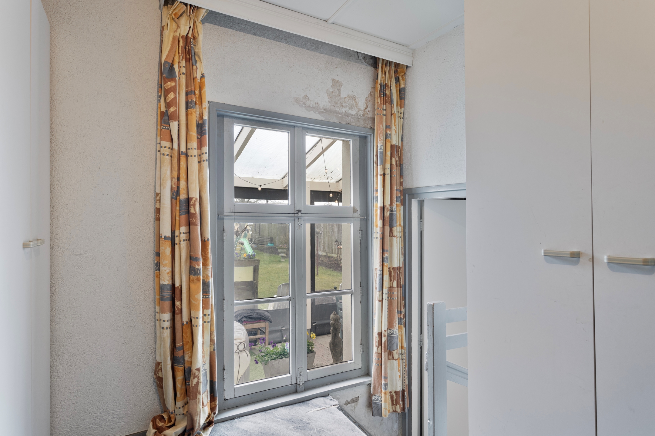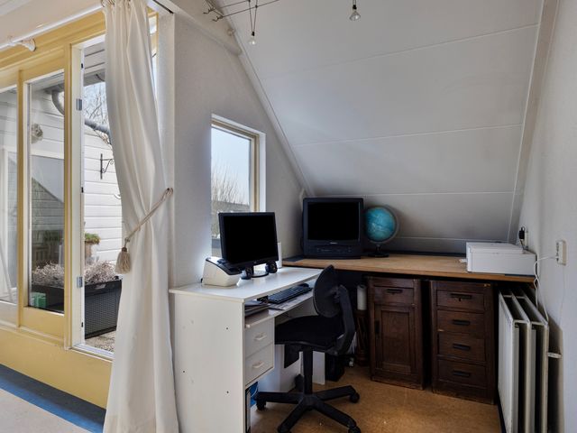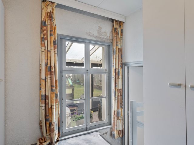 Daarnaast biedt de eetkamer toegang tot de opkamer, een praktische en ruime ruimte die voor diverse doeleinden te gebruiken is. Een groot raam zorgt hier voor natuurlijke ventilatie en lichtinval.