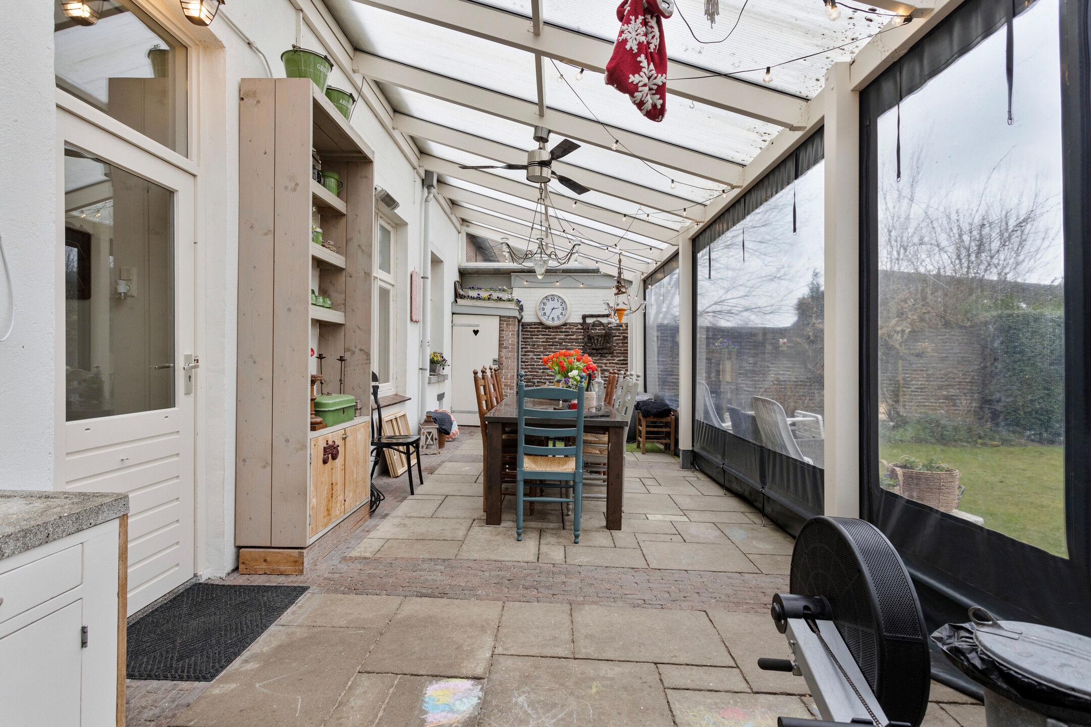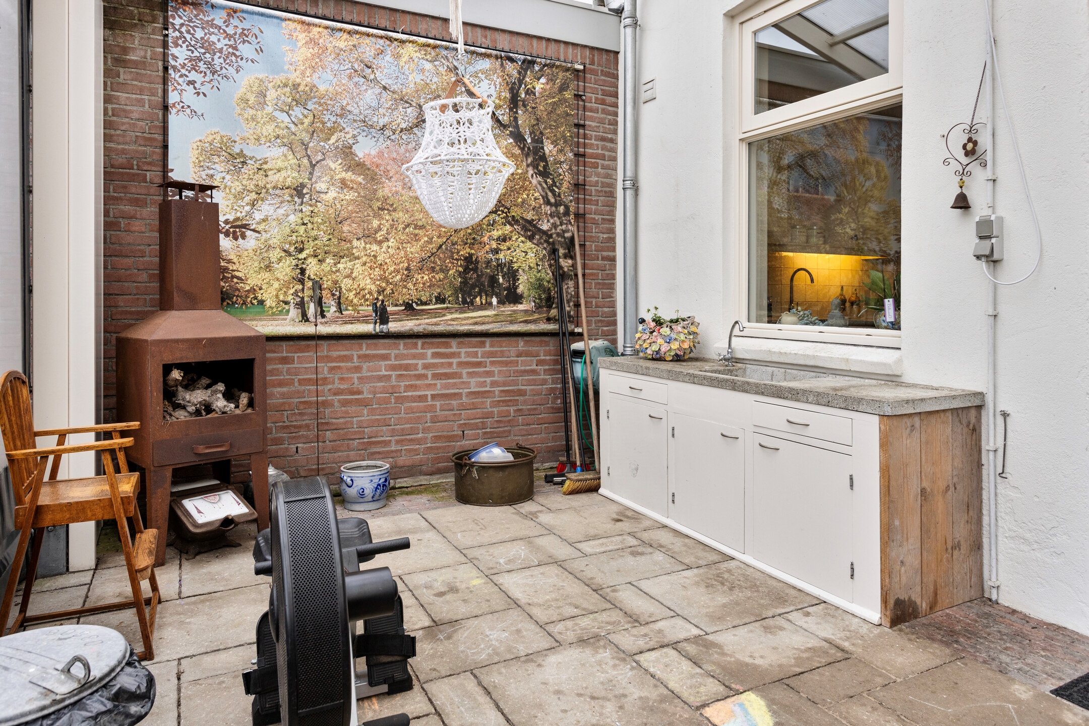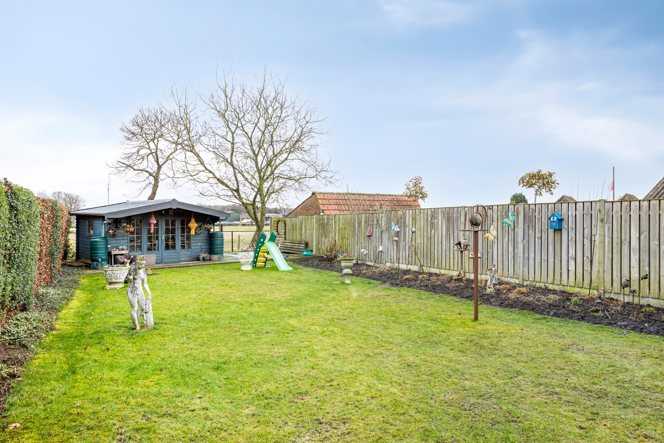 De achtertuin is ruim opgezet en verzorgd aangelegd, met een groot gazon dat perfect geschikt is voor ontspanning of activiteiten. Direct aan de woning bevindt zich een royale overkapping, compleet met verlichting, elektra en een buitenkeuken. Deze overkapping biedt een comfortabele plek om het hele jaar door van de tuin te genieten. Daarnaast geeft de tuin toegang tot een houten berging, die zorgt voor extra opbergruimte.