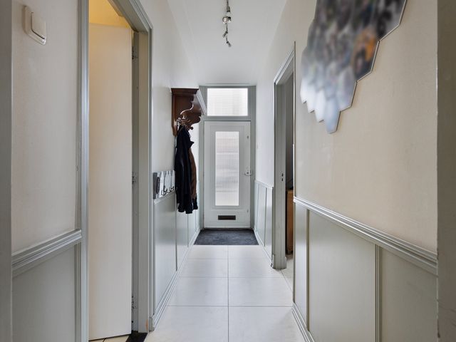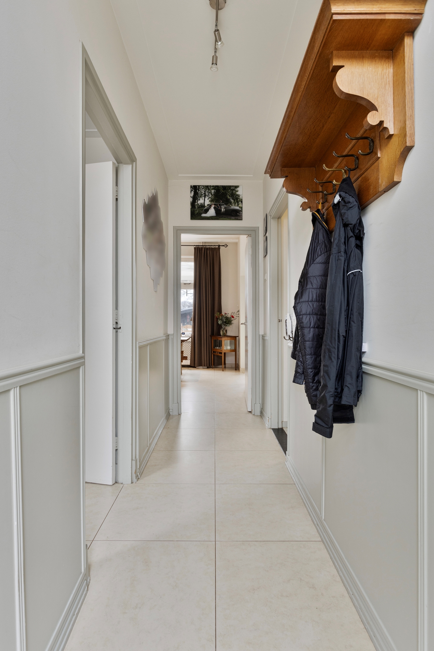 De woning heeft een uitnodigende uitstraling. De stijlvolle ontvangsthal biedt een ruime en sfeervolle entree, vanwaar u toegang heeft tot de woonkamer, eetkamer, het toilet en twee bergingen. De vloer is afgewerkt met de mooie vloertegels.