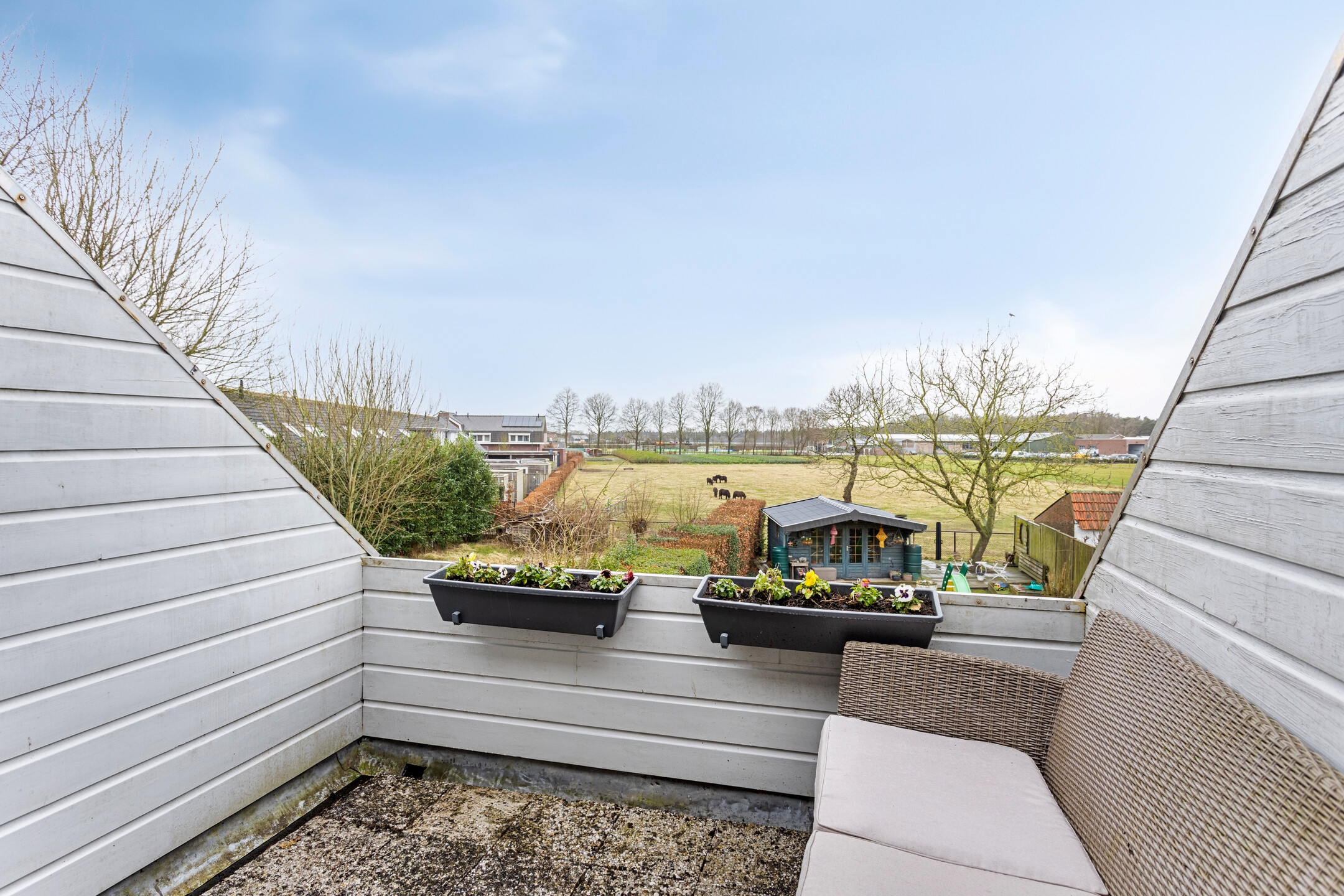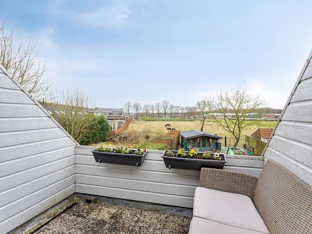 De ruime overloop biedt via openslaande deuren toegang tot het balkon. Dit royale balkon heeft een ruimtelijke opzet en biedt een prachtig, weids uitzicht, waardoor u hier heerlijk kunt genieten van de buitenlucht.