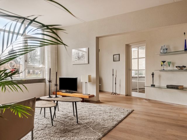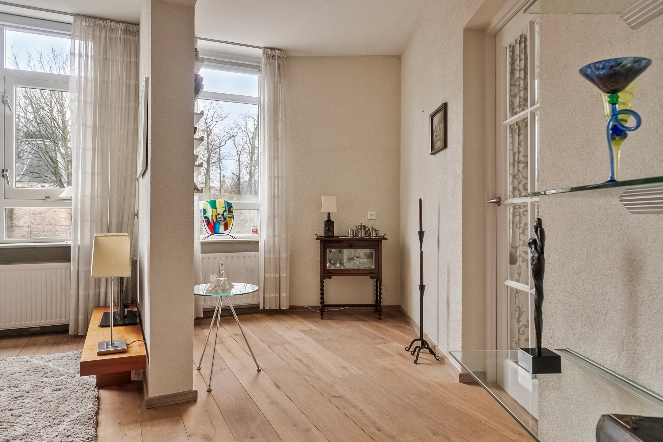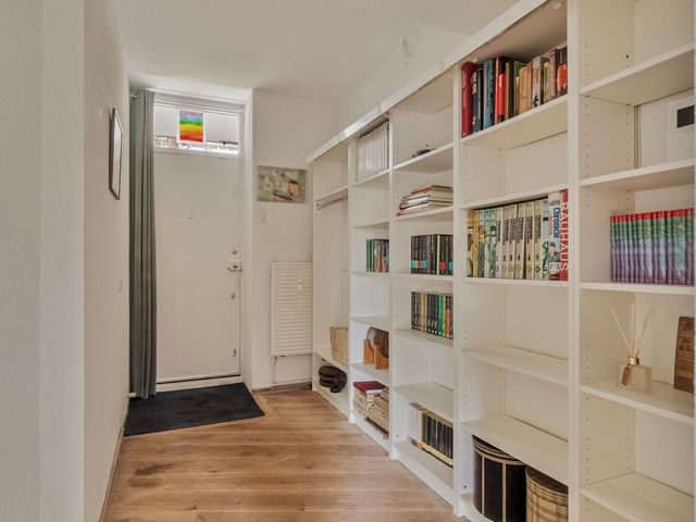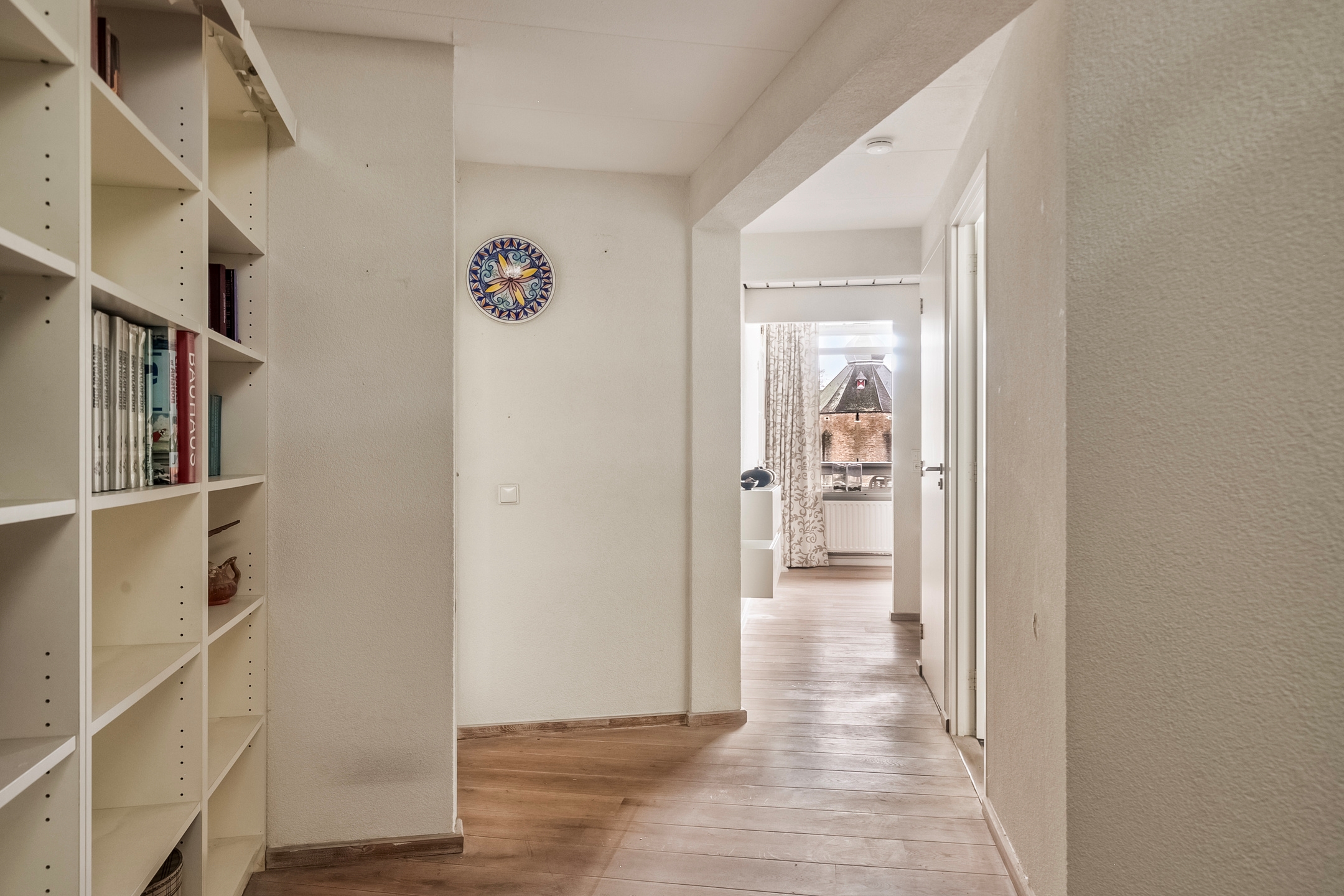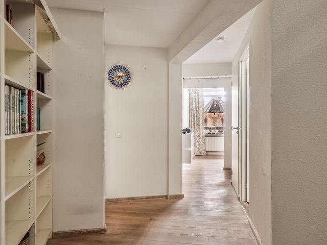 Bij binnenkomst in de hal ervaart u direct de ruimtelijke en speelse indeling van dit appartement. De hal, voorzien van een prachtige houten vloer die doorloopt in alle kamers behalve de tweede slaapkamer, biedt toegang tot de woonkamer, een slaapkamer en de badkamer met separaat toilet.