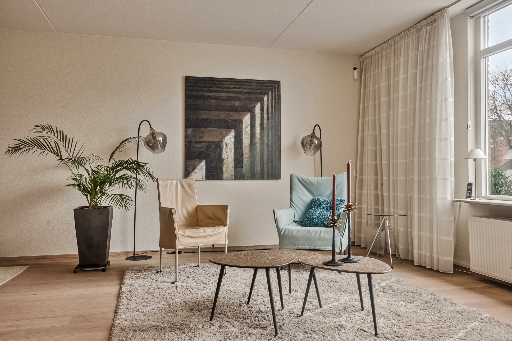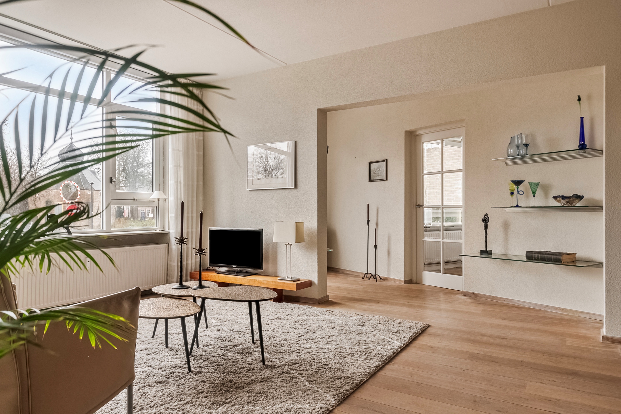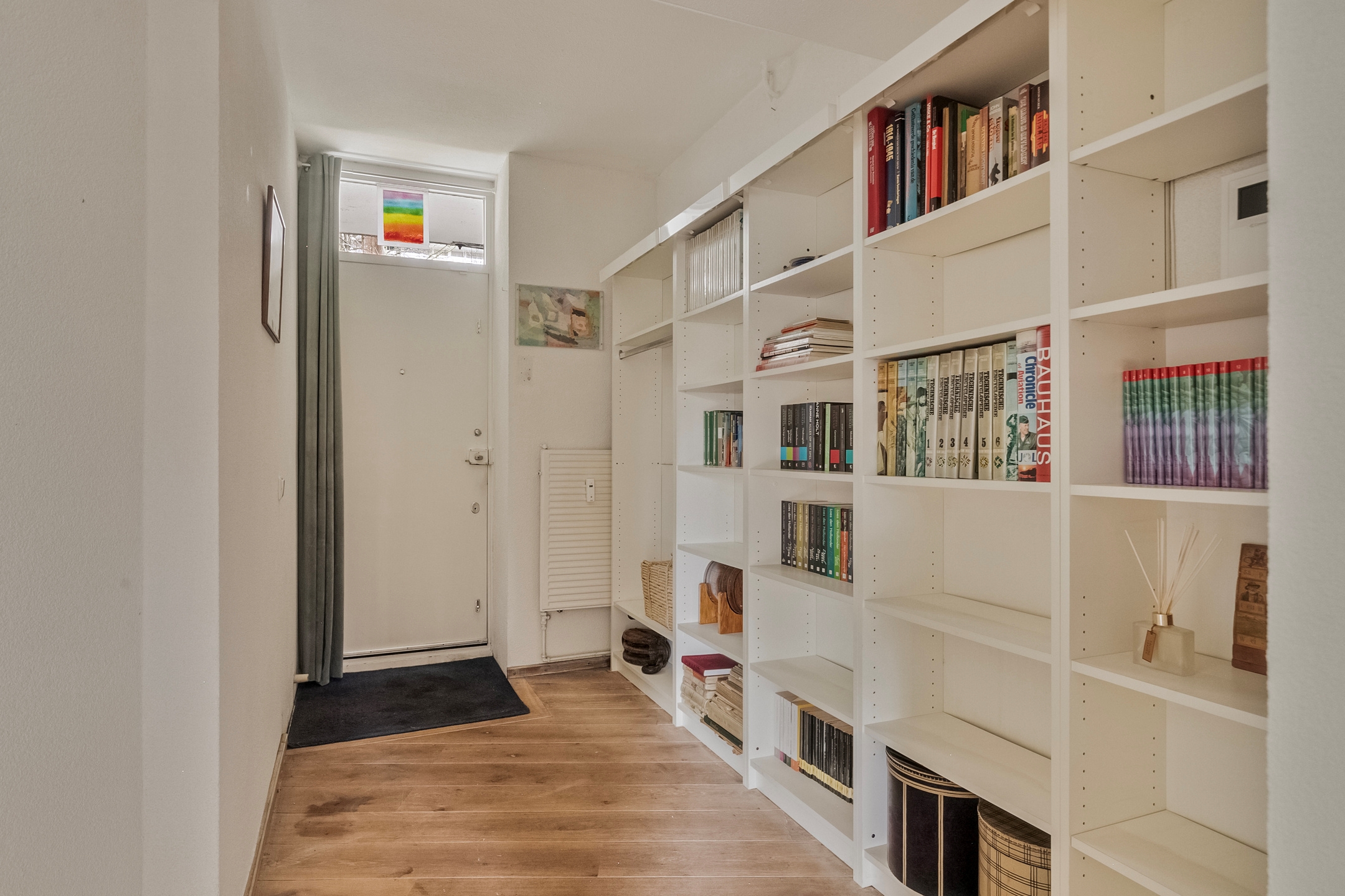 Bij binnenkomst in de hal ervaart u direct de ruimtelijke en speelse indeling van dit appartement. De hal, voorzien van een prachtige houten vloer die doorloopt in alle kamers behalve de tweede slaapkamer, biedt toegang tot de woonkamer, een slaapkamer en de badkamer met separaat toilet.
