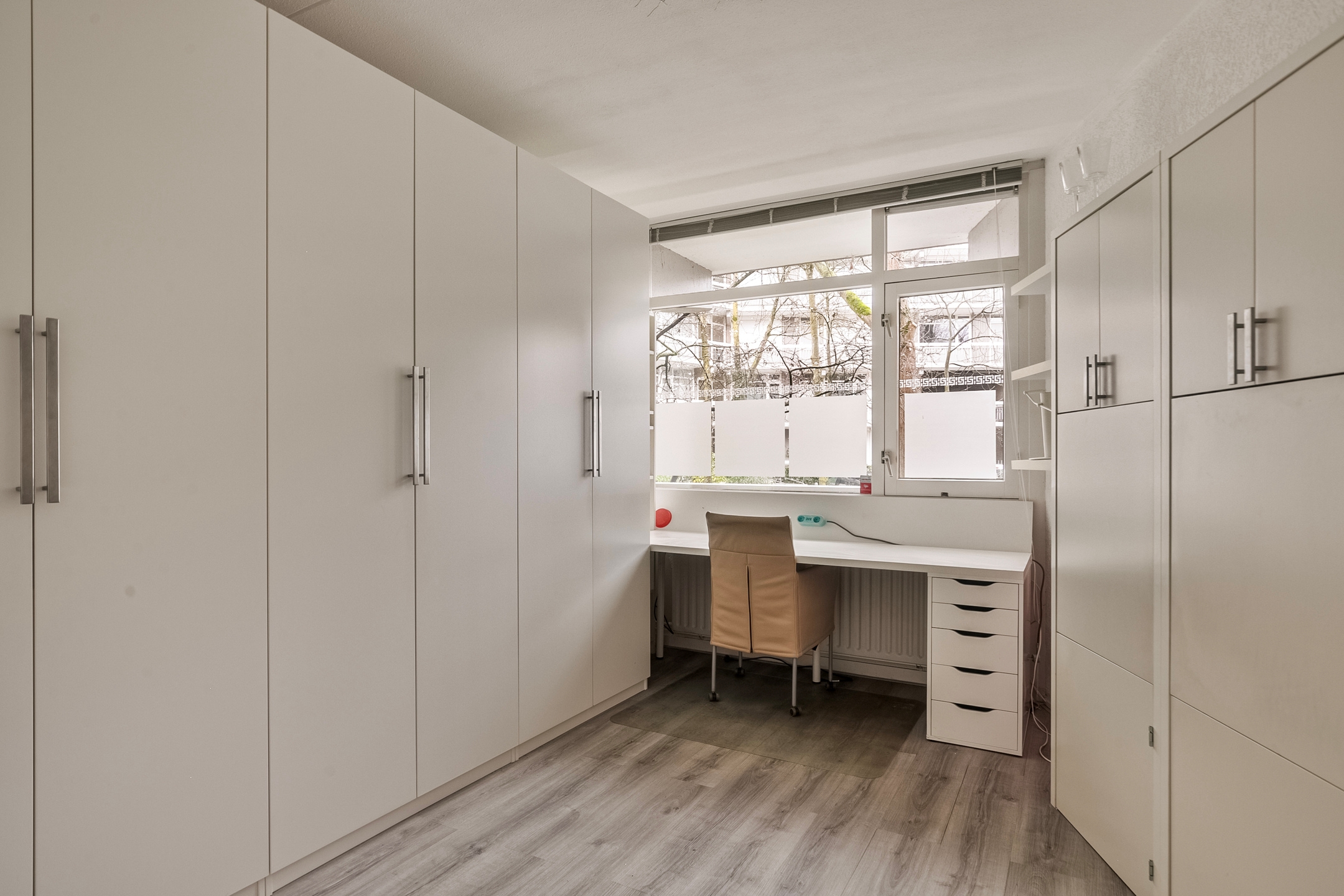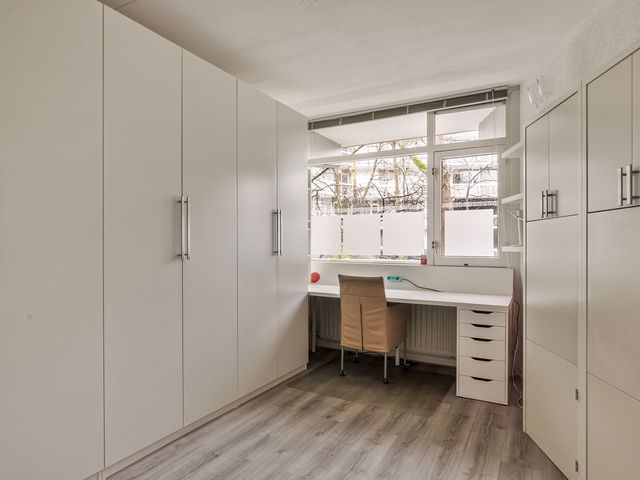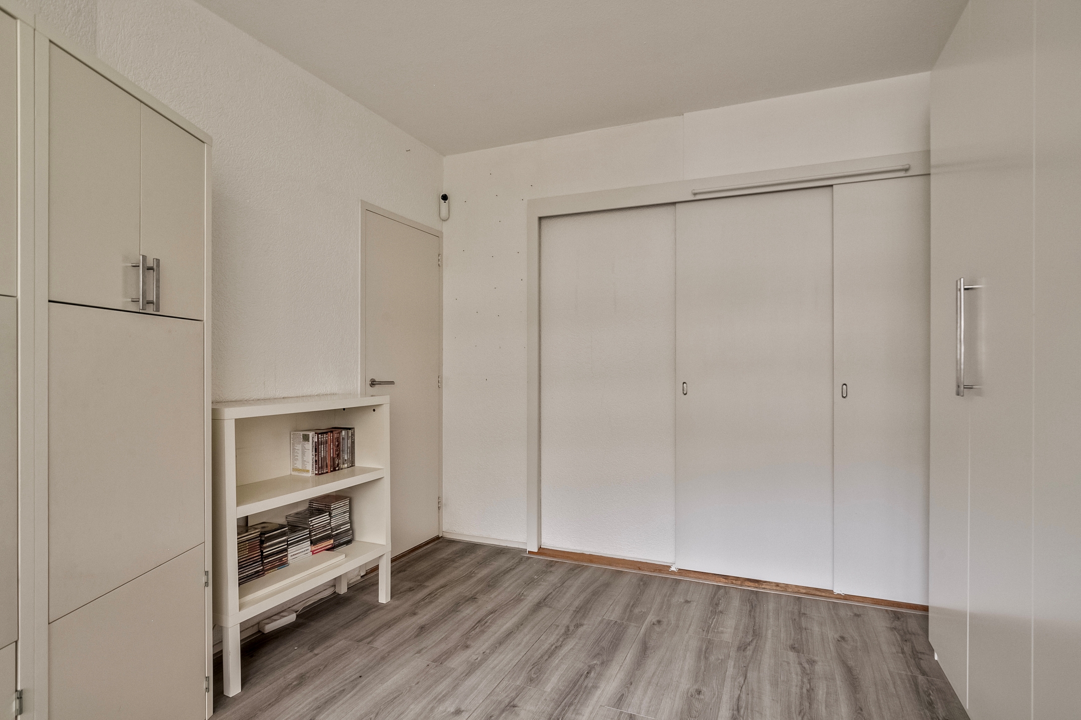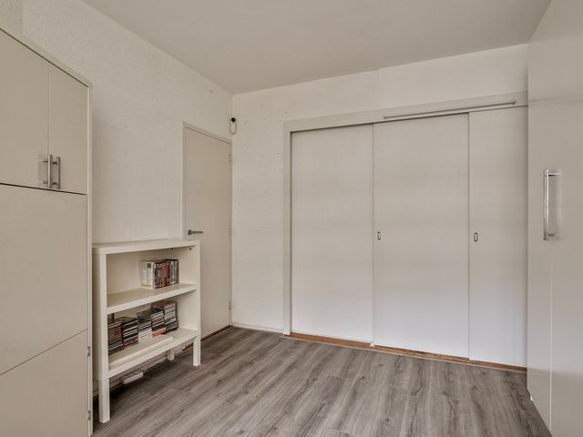 De tweede slaapkamer beschikt over een nette laminaatvloer en biedt daarnaast een vaste kast.