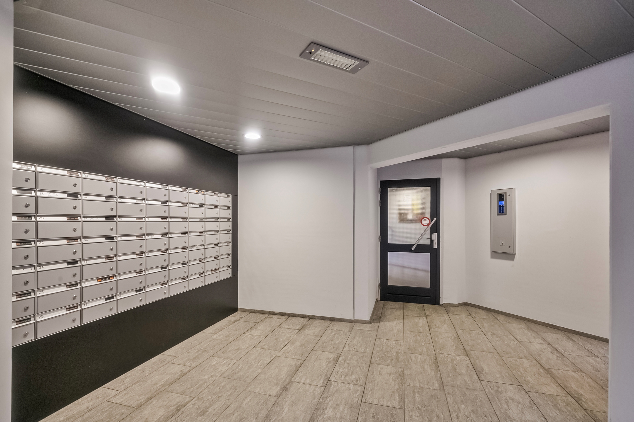 Centrale entree met intercomsysteem, brievenbussen, toegang tot liften, trappenhuis en bergingen in het souterrain.