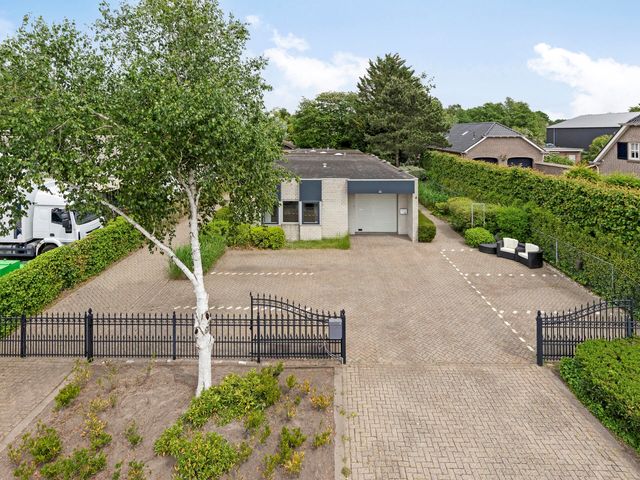 Deze ruime en volledig gelijkvloerse bungalowwoning met inpandige garage én een zelfstandige bedrijfs-/kantoorruimte aan de voorzijde biedt een unieke kans voor ondernemers die wonen en werken willen combineren. De woning beschikt over een royale L-vormige woonkamer aan de achterzijde, een moderne keuken, bijkeuken, badkamer, twee aparte toiletten en vier slaapkamers. De ruime tuin met tuinhuis - tevens te gebruiken als werkplek of opslagruimte - maakt het geheel compleet.