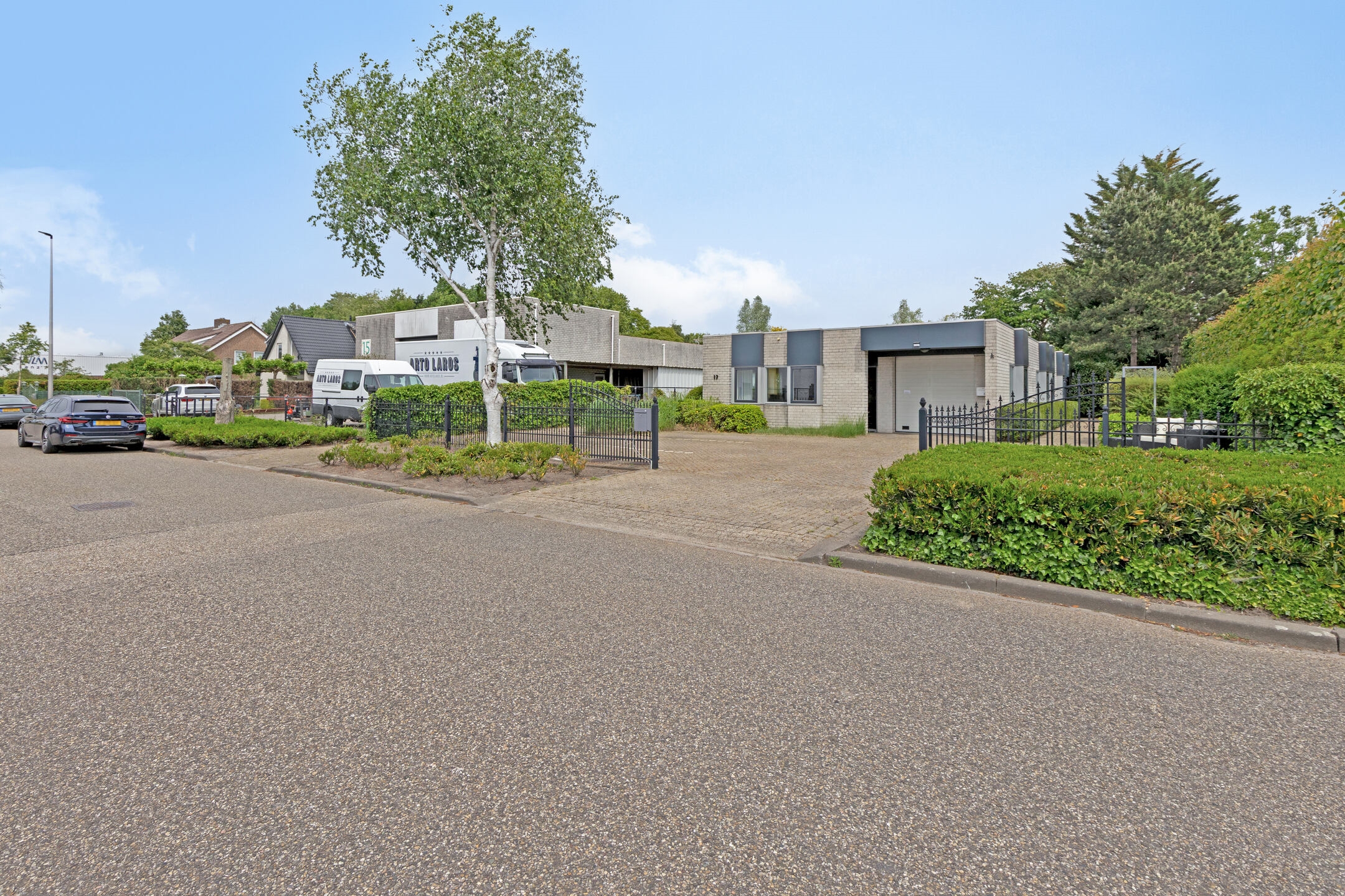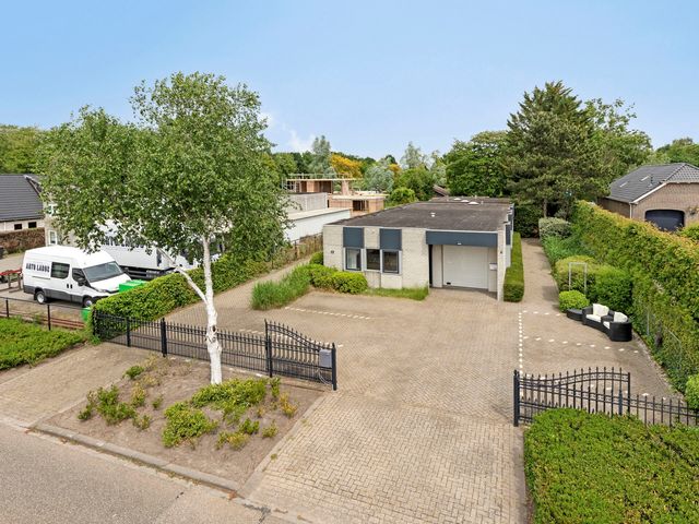 Bij aankomst bereikt u direct de ruime oprit, die afsluitbaar is met een hek en parkeergelegenheid biedt voor maar liefst zes auto's. Daarnaast is er een tweede, aparte oprit aanwezig die toegang biedt tot het privé woongedeelte. Aan de voorzijde van het perceel bevindt zich de zelfstandige bedrijfsruimte/kantoor, voorzien van een eigen voordeur, meterkast en energiemeter. Deze ruimte is ideaal voor ondernemers in de zakelijke dienstverlening of creatieve beroepen.