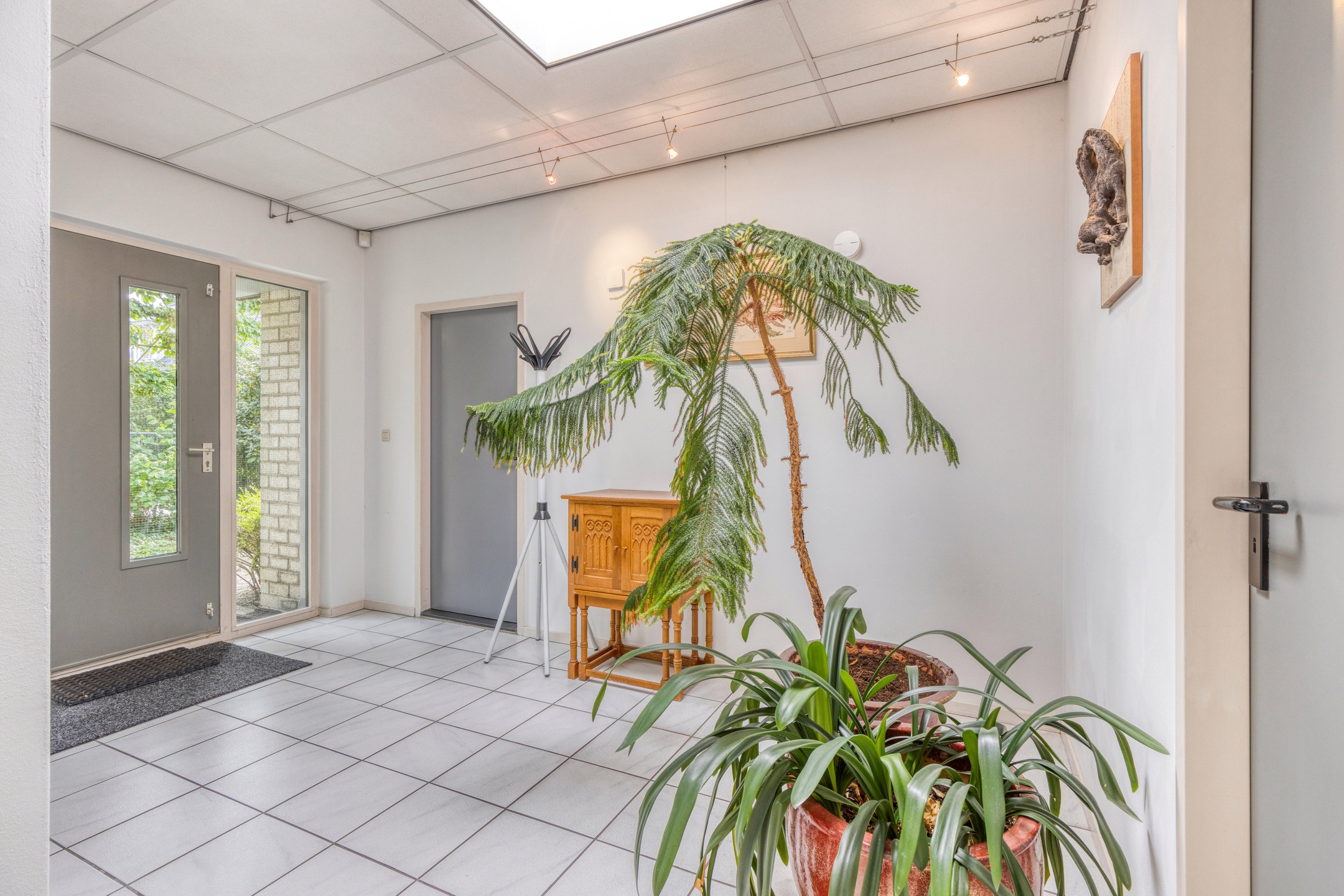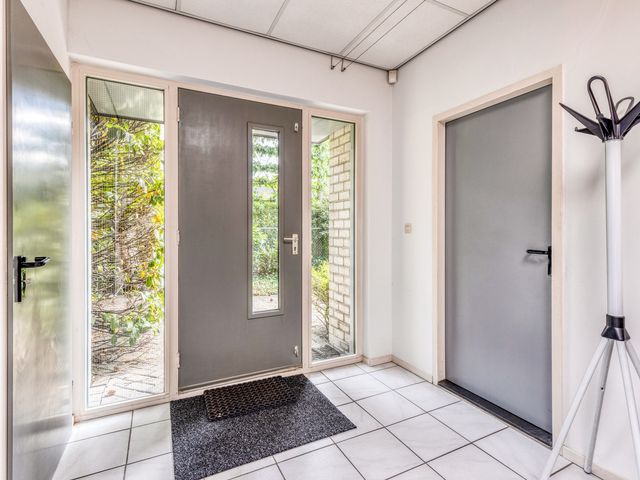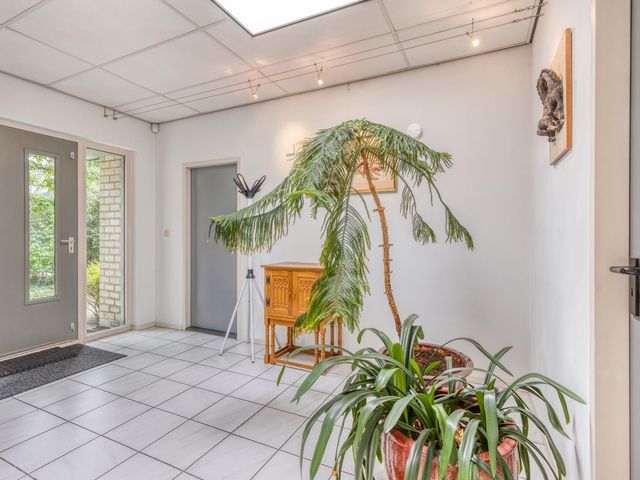 De entreehal biedt toegang tot het woonhuis, de bedrijfsruimte én één van de twee toiletten (separaat en tevens bruikbaar voor zakelijk gebruik).