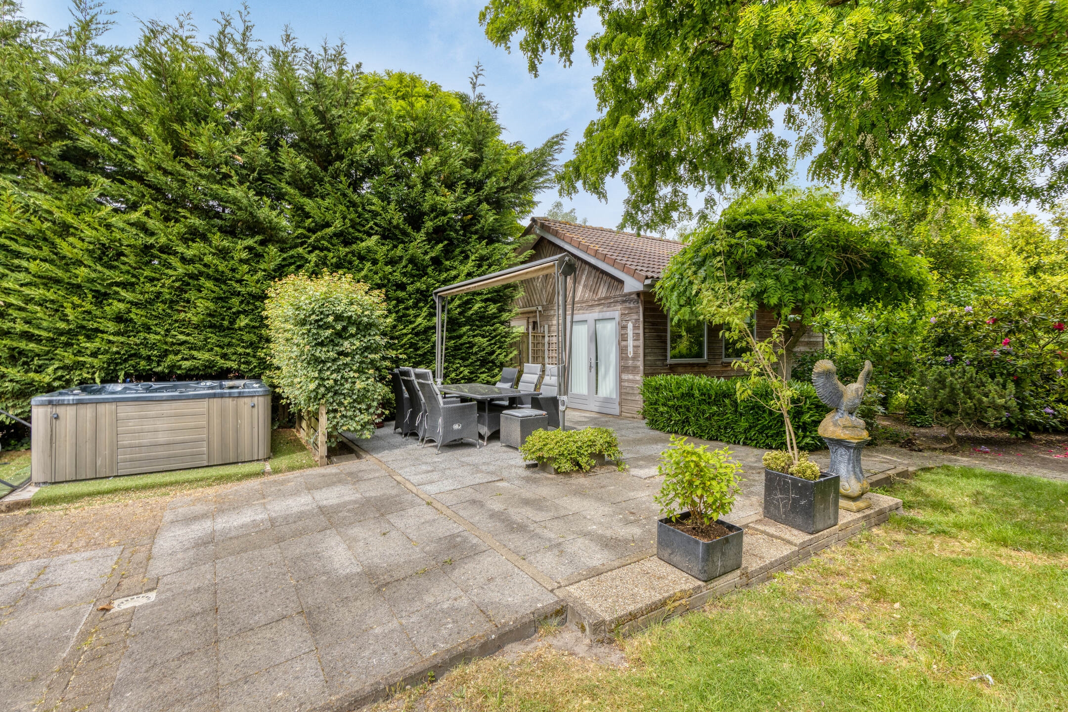 - Royale tuin met jacuzzi en tuinhuis (geschikt als werkplek)