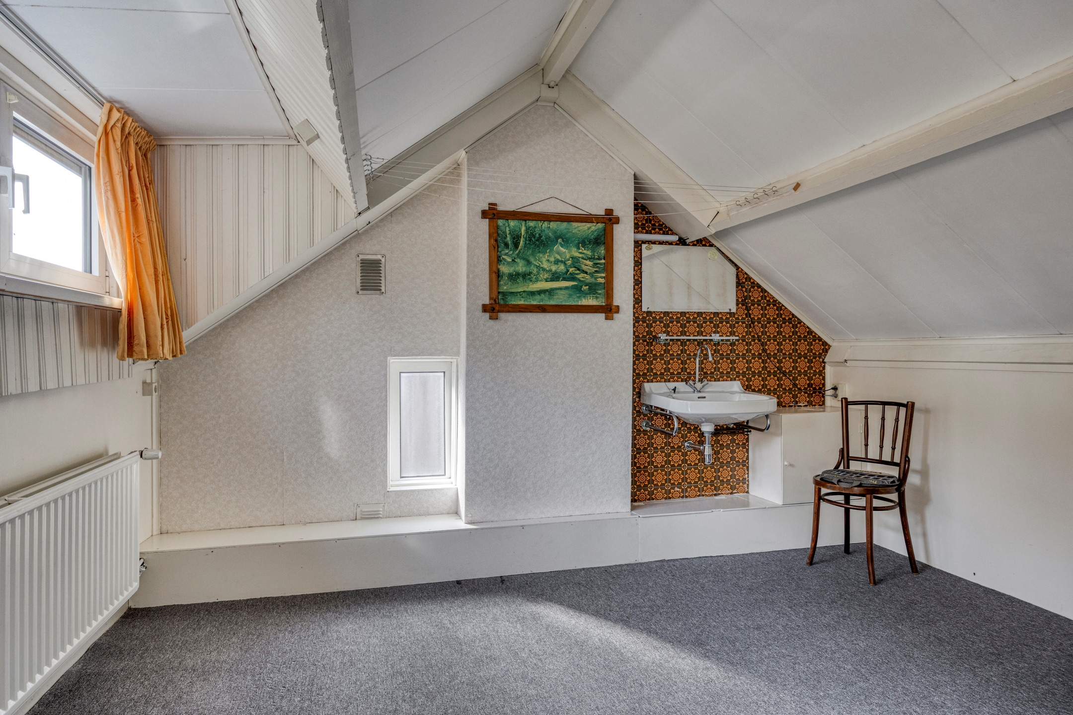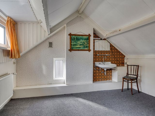 De 4e slaapkamer heeft een forse dakkapel (kunststof), een wastafel, extra bergruimte in de knieschotten (voor & achter) en een speels klein staand zijgevelraam.