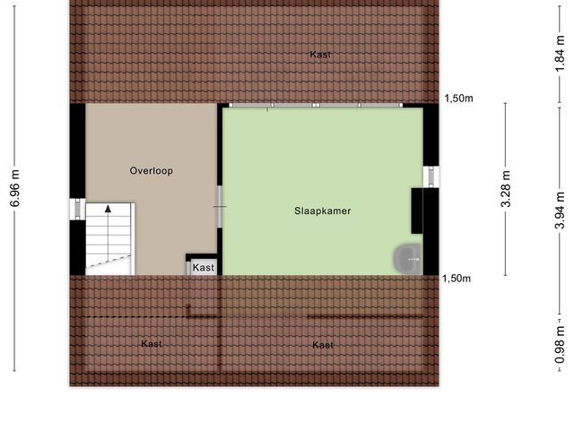 De overloop heeft een staand zijgevelraam en een opstelplaats voor de Vaillant C.V. ketel. Het creëren van een extra werk-/speelhoek in de overloop is zondermeer mogelijk.