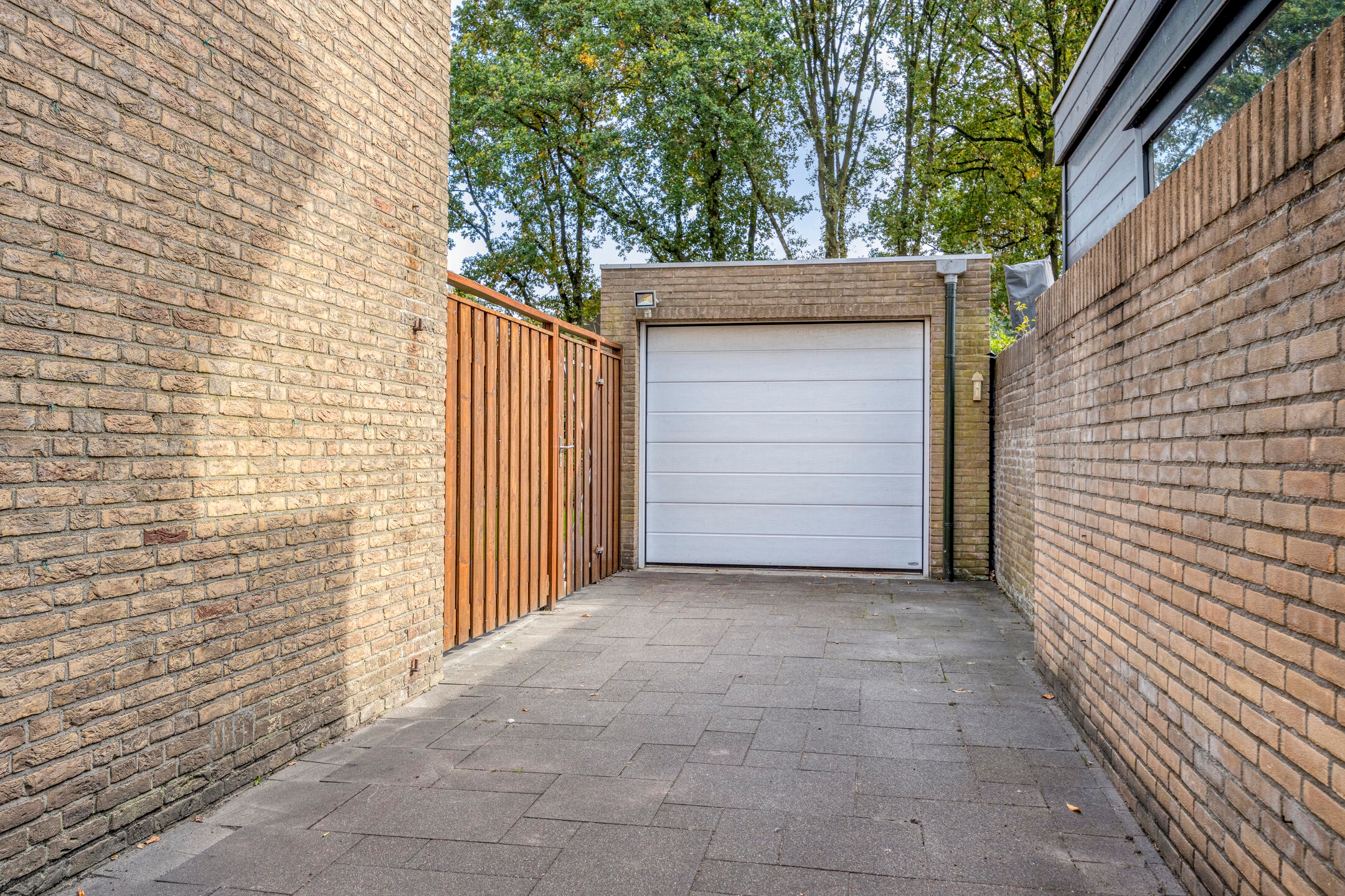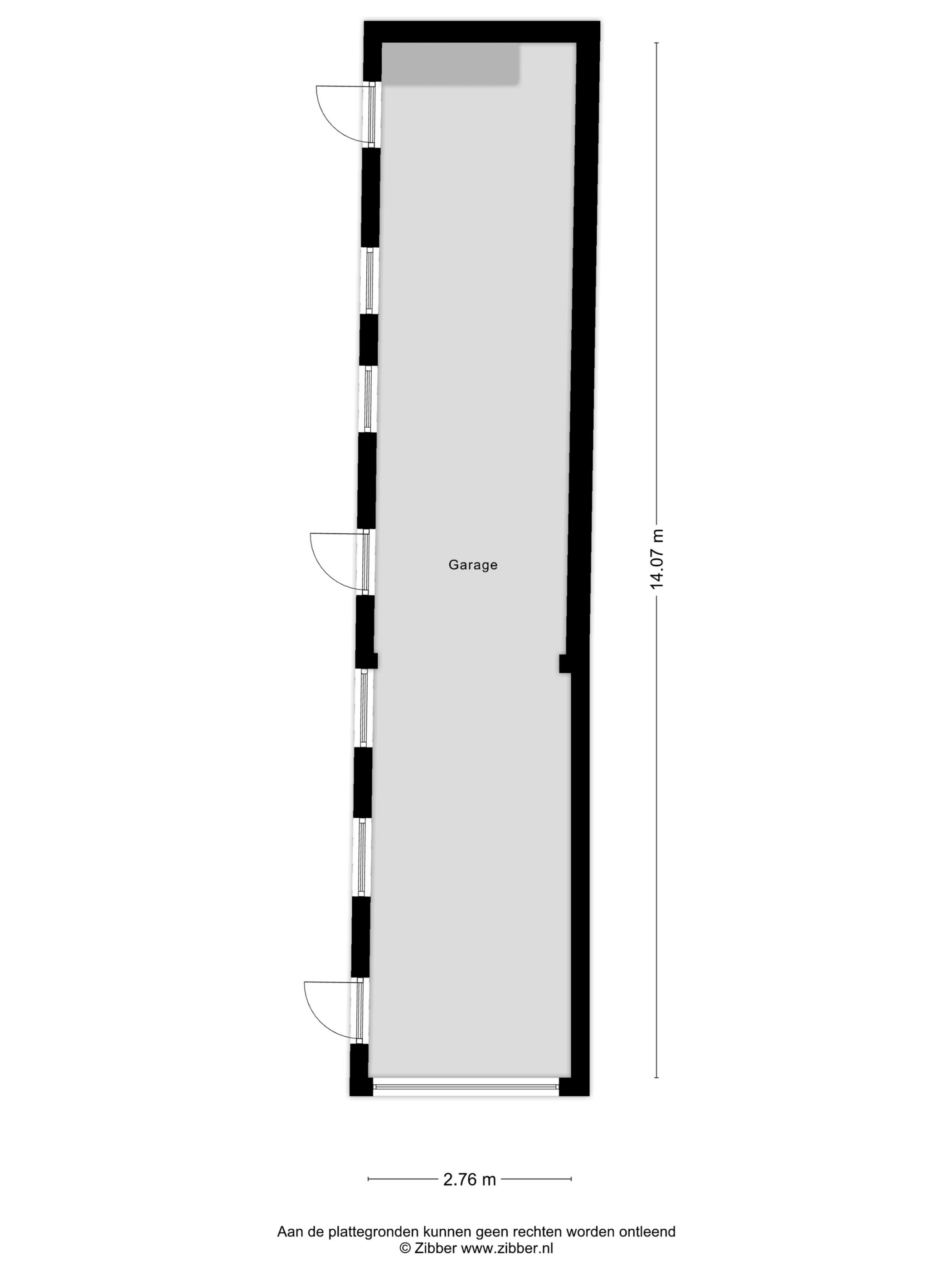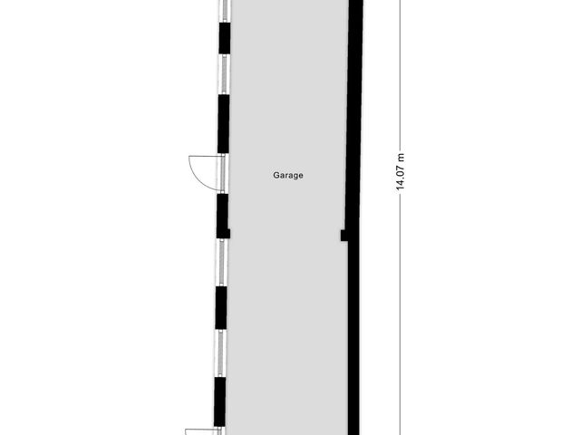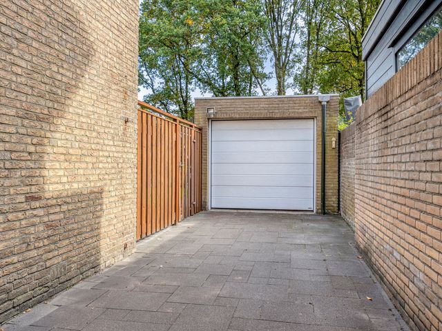 De verwarmde garage, ca. 2.64/2.73x14.05 m, is in spouwmuren gebouwd, heeft elektra, een betonvloer, een sectionale garagedeur en 3 loopdeuren in de zijgevel. Voor de garage beschikt de woning zelfs over zeer diepe oprit, ca. 2.90x15.45 m, ca. 3/4 eigen parkeerplaatsen achter elkaar.
