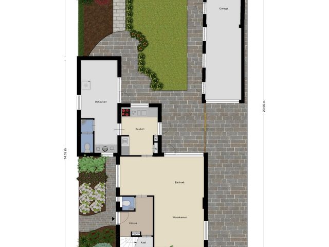 De voortuin zorgt voor extra privacy in de woning en maakt het straatbeeld beduidend fraaier. Middels een afsluitbare poort is de aantrekkelijke achtertuin te bereiken. Deze vrije achtertuin ligt gunstig op het zuidwesten. Door deze ligging kunt u kiezen voor volop genieten van de zon of een schaduwrijke plek opzoeken. Ook uw privacy is optimaal.