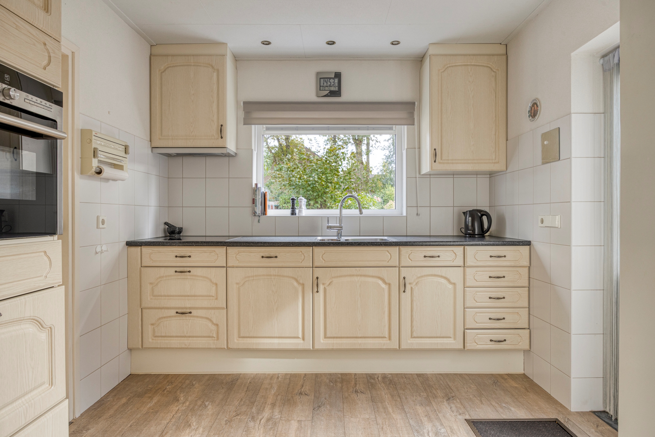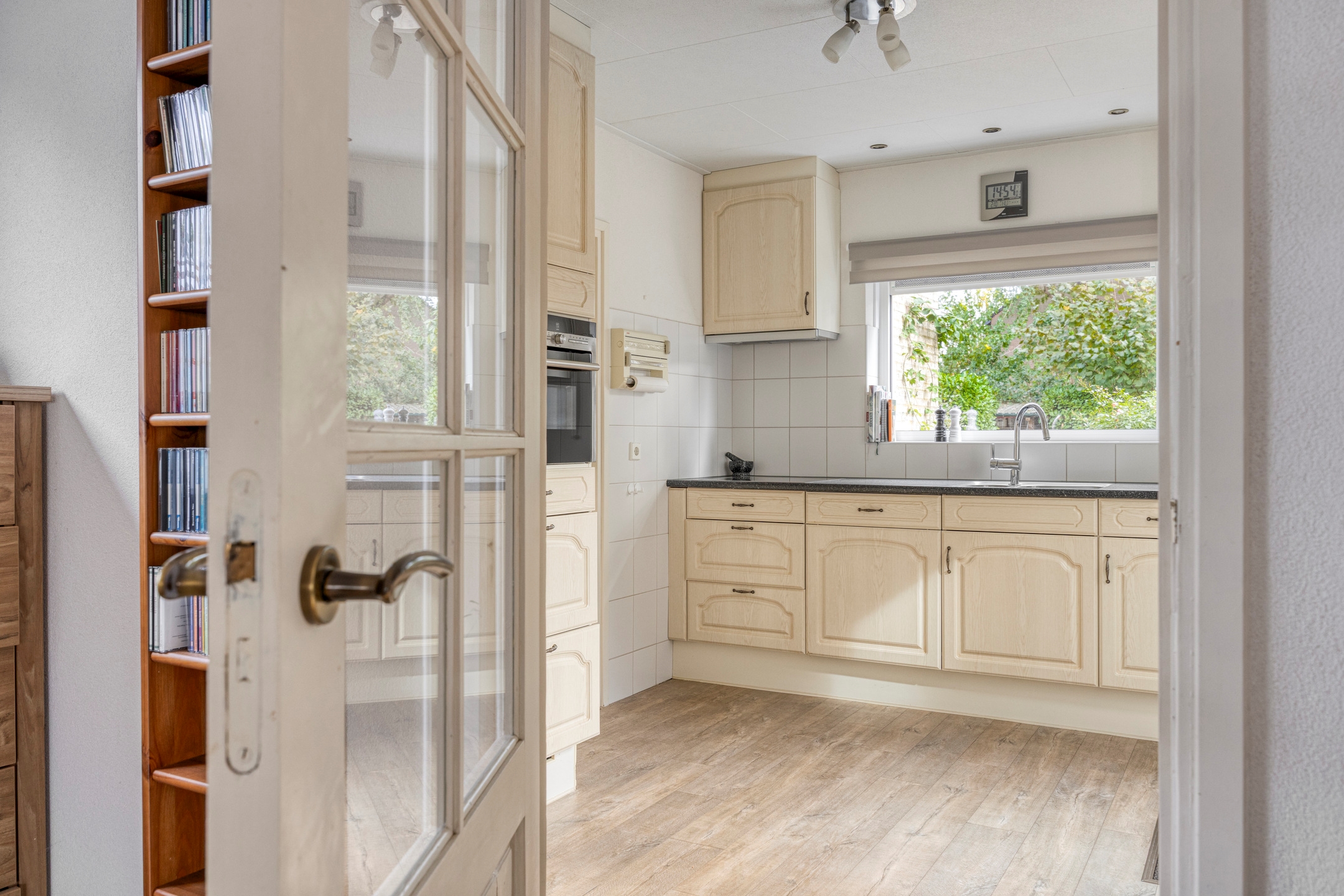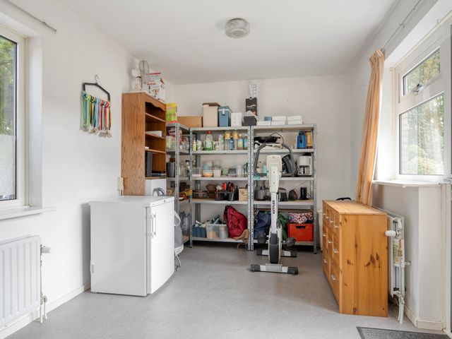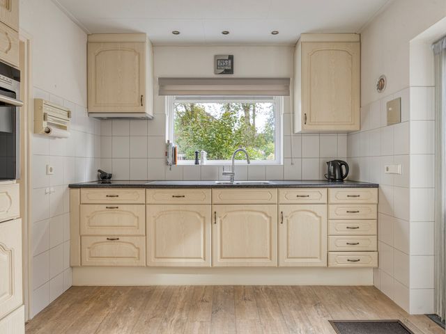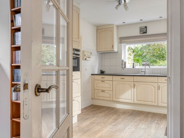 De complete L-vormige inbouwkeuken is uitgerust met een afzuigkap, een inductiekookplaat, combi-oven, vaatwasmachine, koelkast en diepvriezer en een rvs combimagnetron. De semi-open bijkeuken heeft een handige pantry met een spoelbak, een werkblad en een was-/drogeraansluiting.