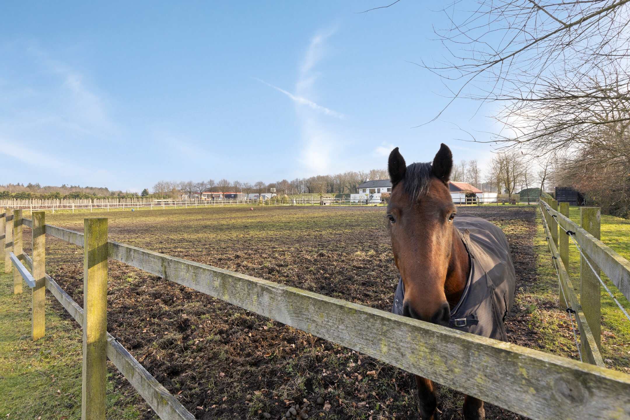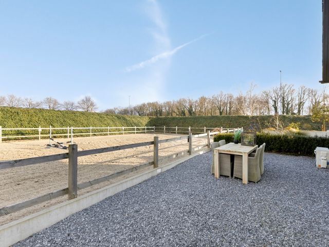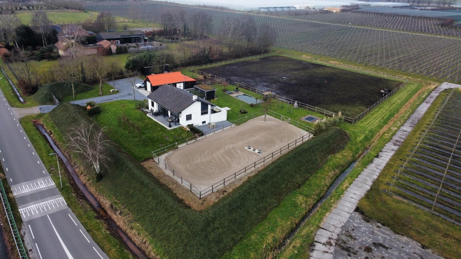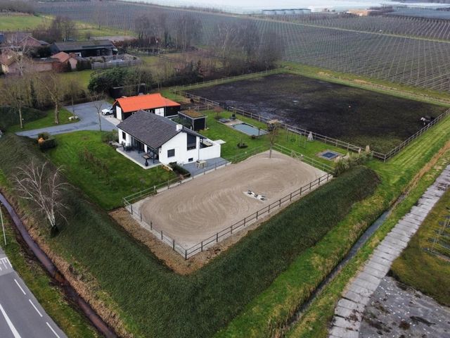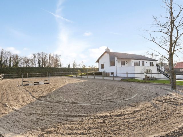 Op het perceel bevindt zich een professioneel ingerichte paardenstal, een grote rijbak en paardenweide.