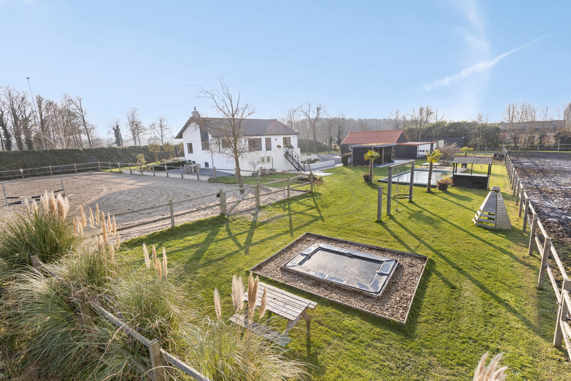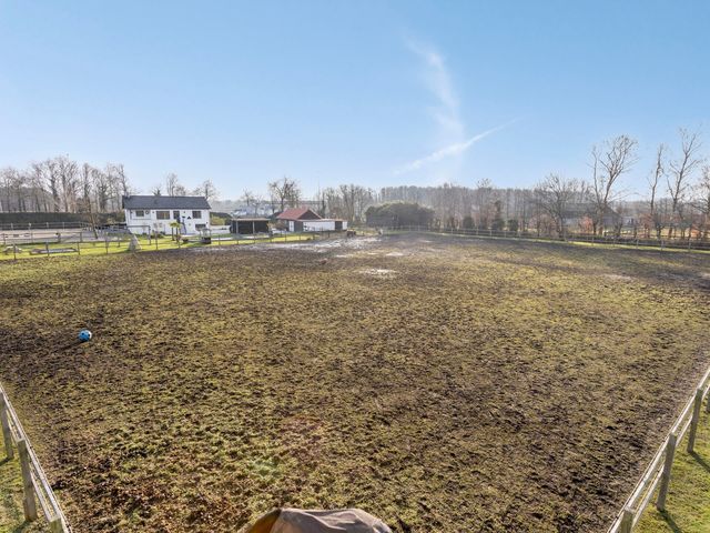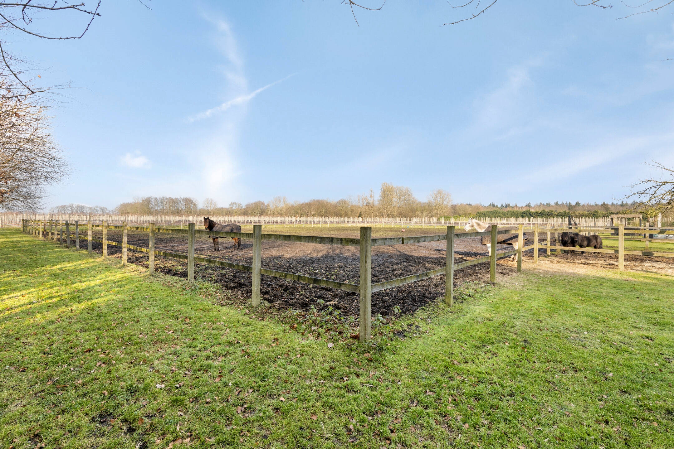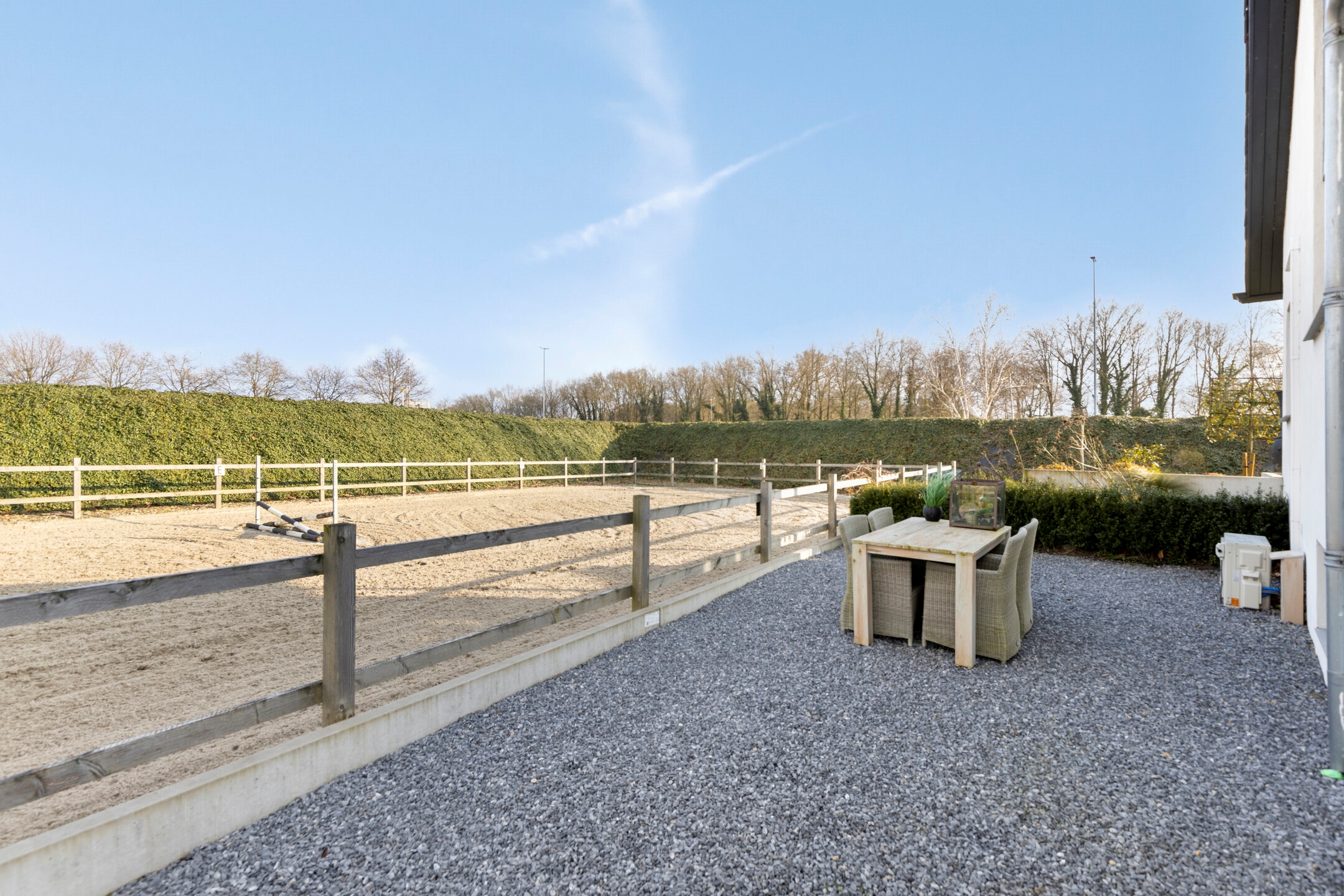 Op het perceel bevindt zich een professioneel ingerichte paardenstal, een grote rijbak en paardenweide.