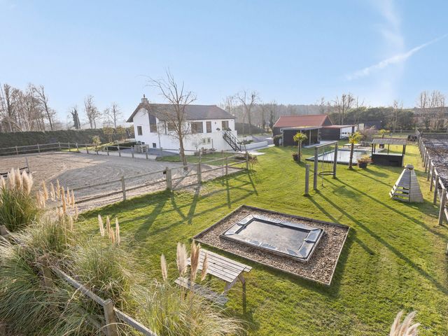Deze prachtige woning biedt luxe, ruimte en privacy in een groene omgeving. Met een royale woonkeuken, sfeervolle woonkamer, luxe badkamers en vier slaapkamers is wooncomfort gegarandeerd. Buiten geniet u van een fraai aangelegde tuin met zwembad, en een stijlvol poolhouse.