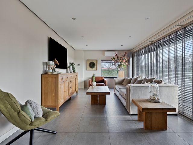 - Een royale woonkamer met airconditioning die zowel koelt als verwarmt