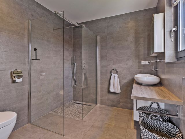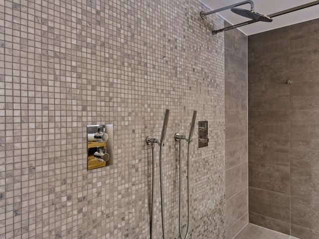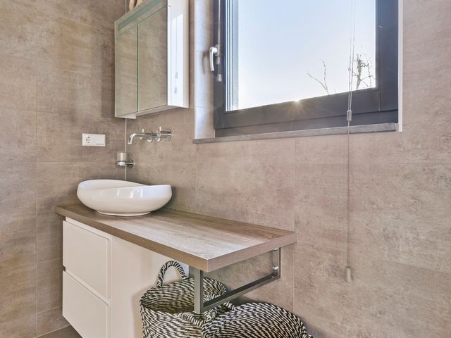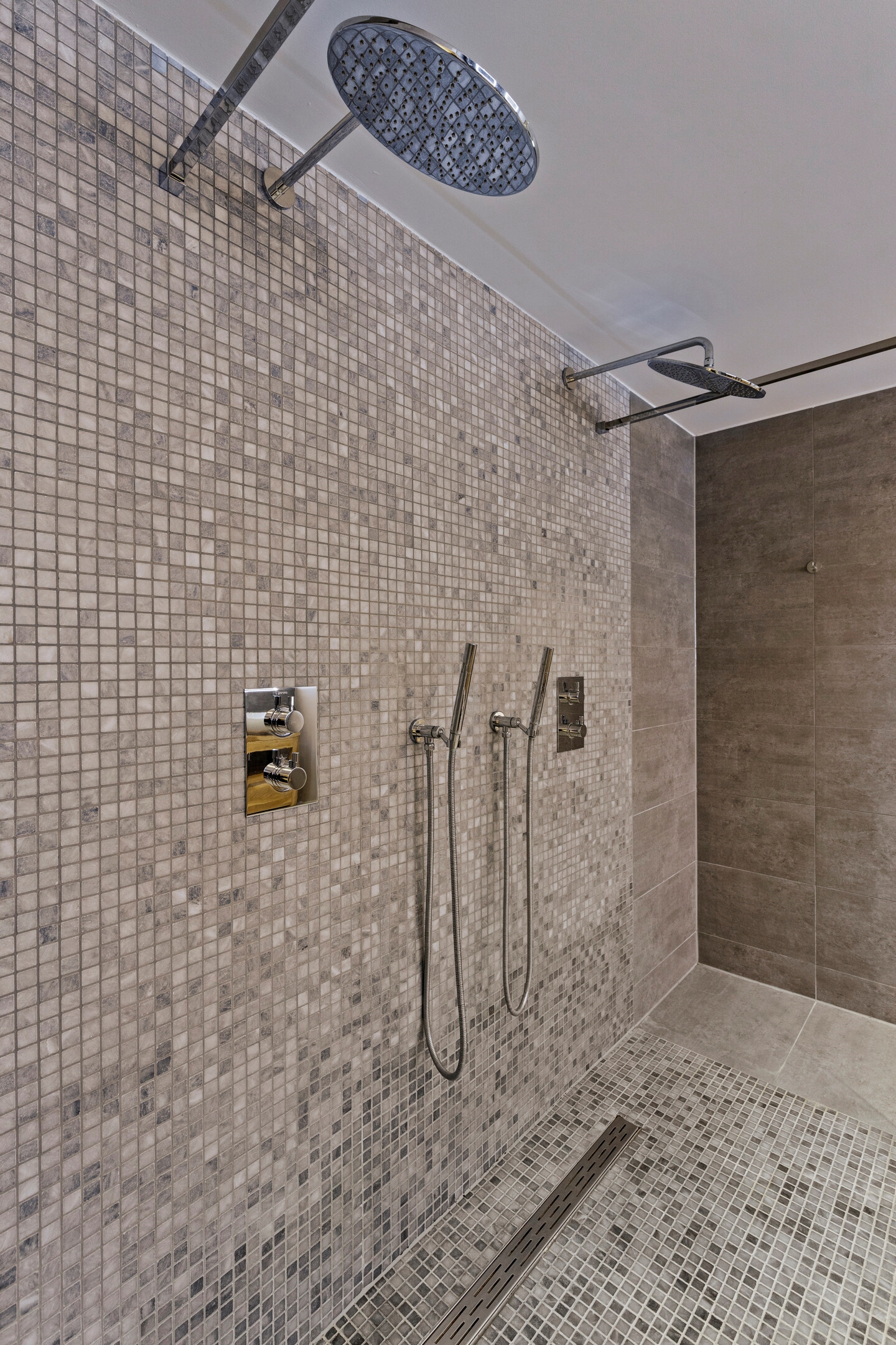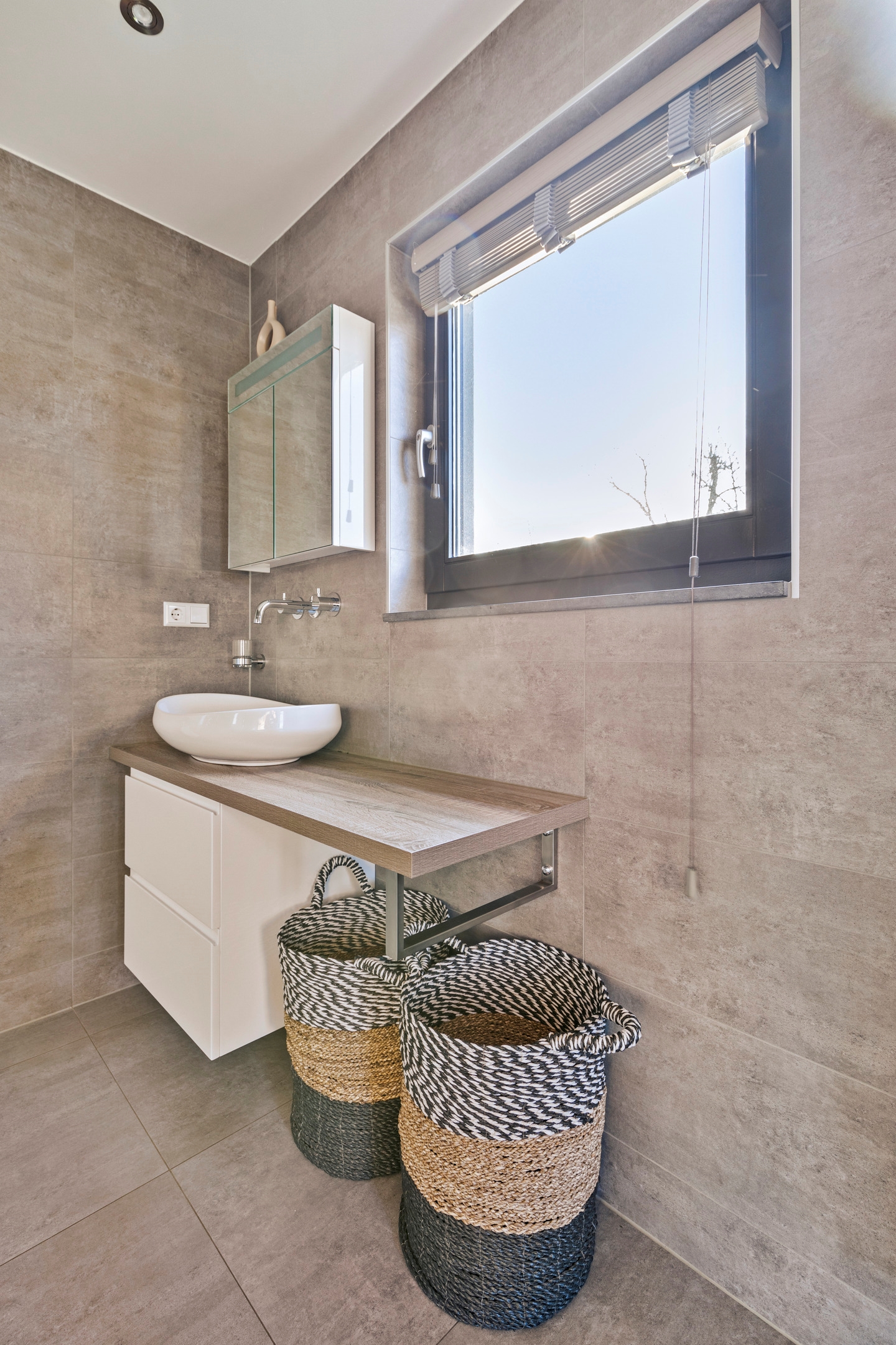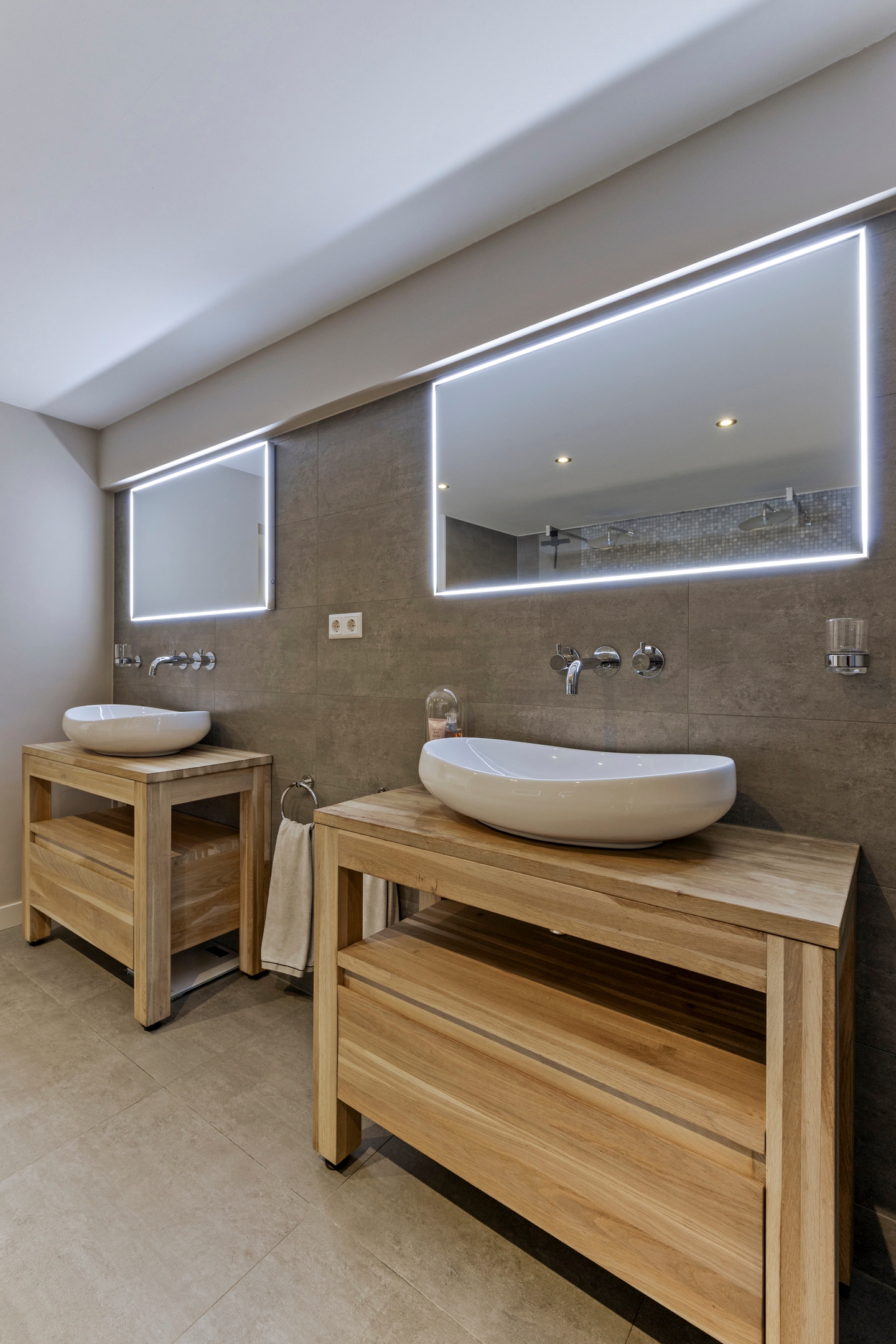 De luxe badkamer in deze woonlaag is een echte blikvanger. Voorzien van een riante inloopdouche met dubbele regendouche, een vrijstaand ligbad, een wandcloset, een designradiator en twee stijlvolle wastafelmeubels met waskommen. De hoogwaardige afwerking en sfeervolle verlichting zorgen voor een wellness gevoel in eigen huis.