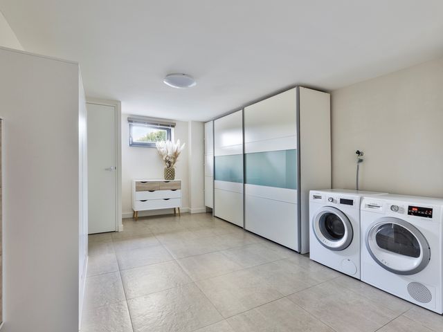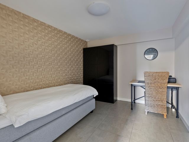 Daarnaast bevindt zich op deze verdieping een extra kamer die flexibel in te richten is. Of u nu op zoek bent naar een rustige thuiswerkplek, een hobbyruimte of een comfortabele logeerkamer, deze ruimte biedt talloze mogelijkheden. Aansluitend op deze ruimte bevindt zich een praktische berging, ideaal voor opslag of als wasruimte. Met aansluitingen voor wasmachine en droger is dit een functionele en georganiseerde plek.