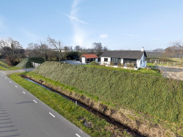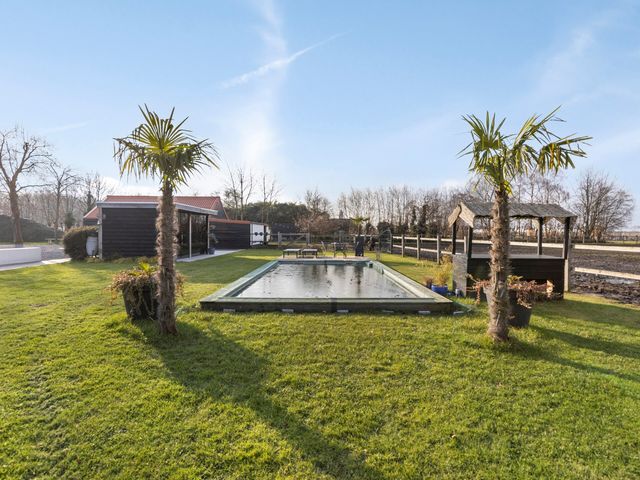 Direct grenzend aan de woning bevindt zich een ruime rijbak. Deze is in 2019 afgegraven en voorzien van 3 strengen drainagebuis, zuivere zwarte grond en afgevuld met M3 zand.