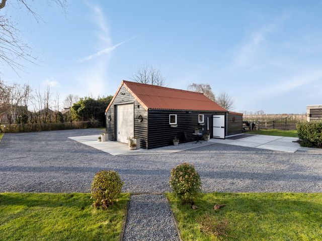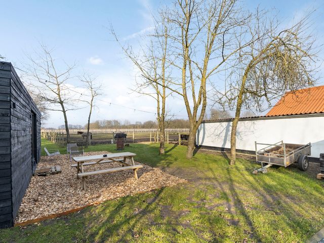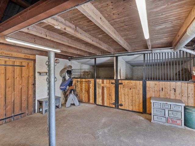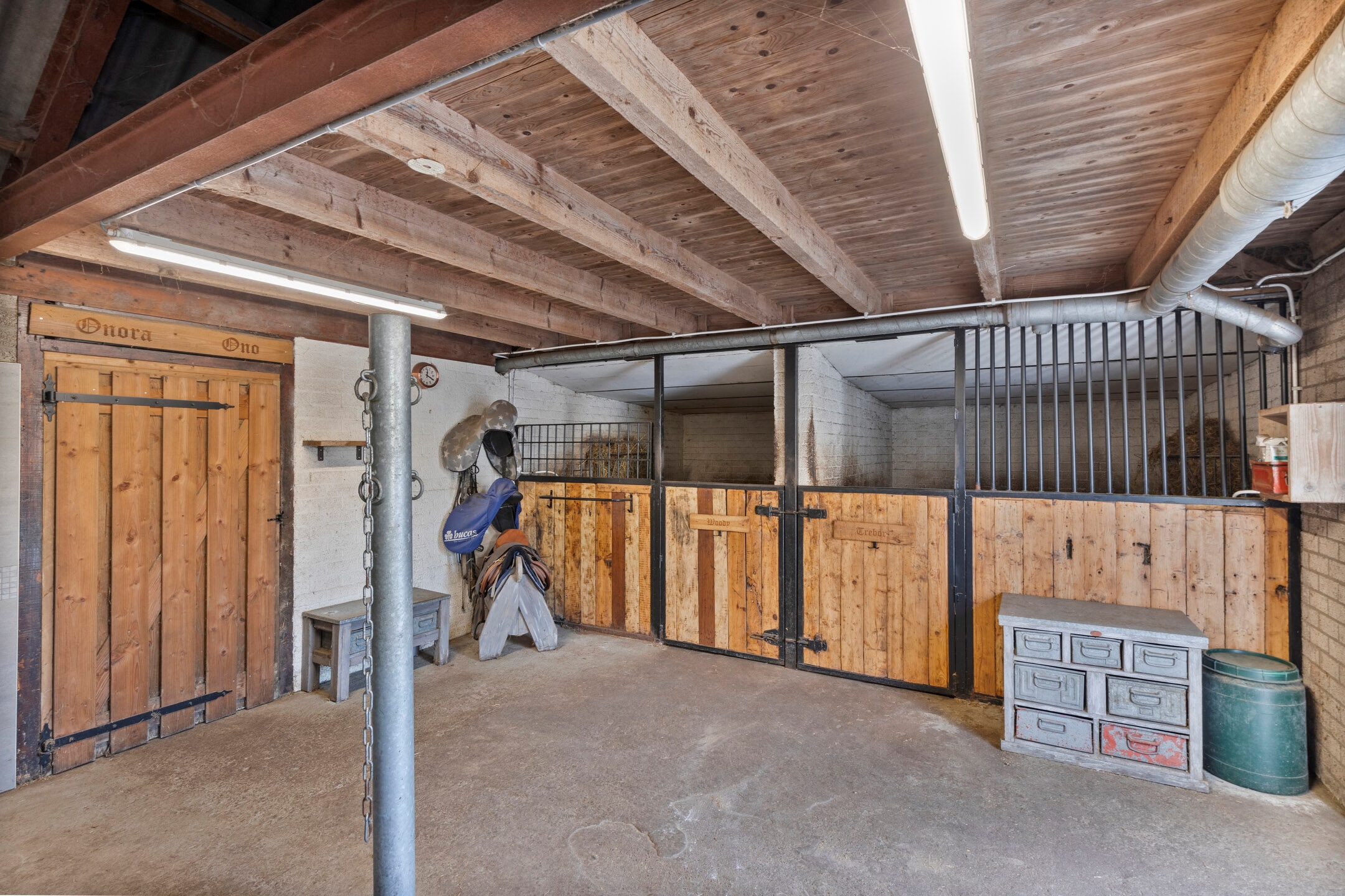 De schuur is volledig ingericht als paardenstal, voorzien van twee ruime boxen en een poetsplaats. Dankzij de degelijke afwerking en de ligging direct aan het weiland is dit een ideale plek voor paardenliefhebbers.