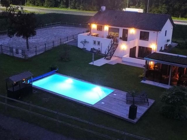 Centraal in de tuin ligt een schitterend verwarmd zwembad, perfect voor verkoeling op warme dagen. Het zwembad is omringd door een ruim terras waar u in alle privacy kunt genieten van de zon en het prachtige uitzicht over de omliggende landerijen.