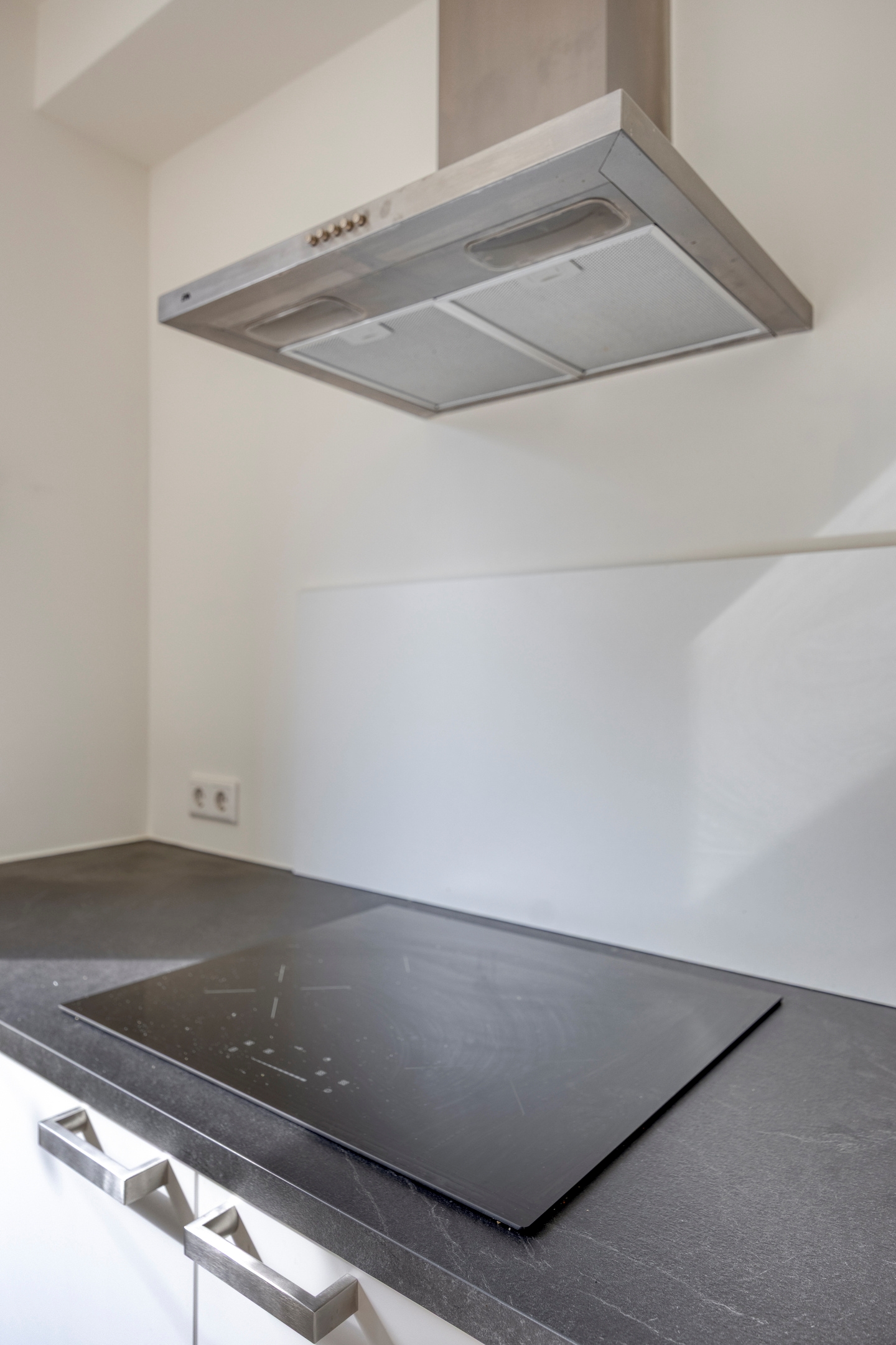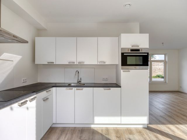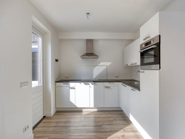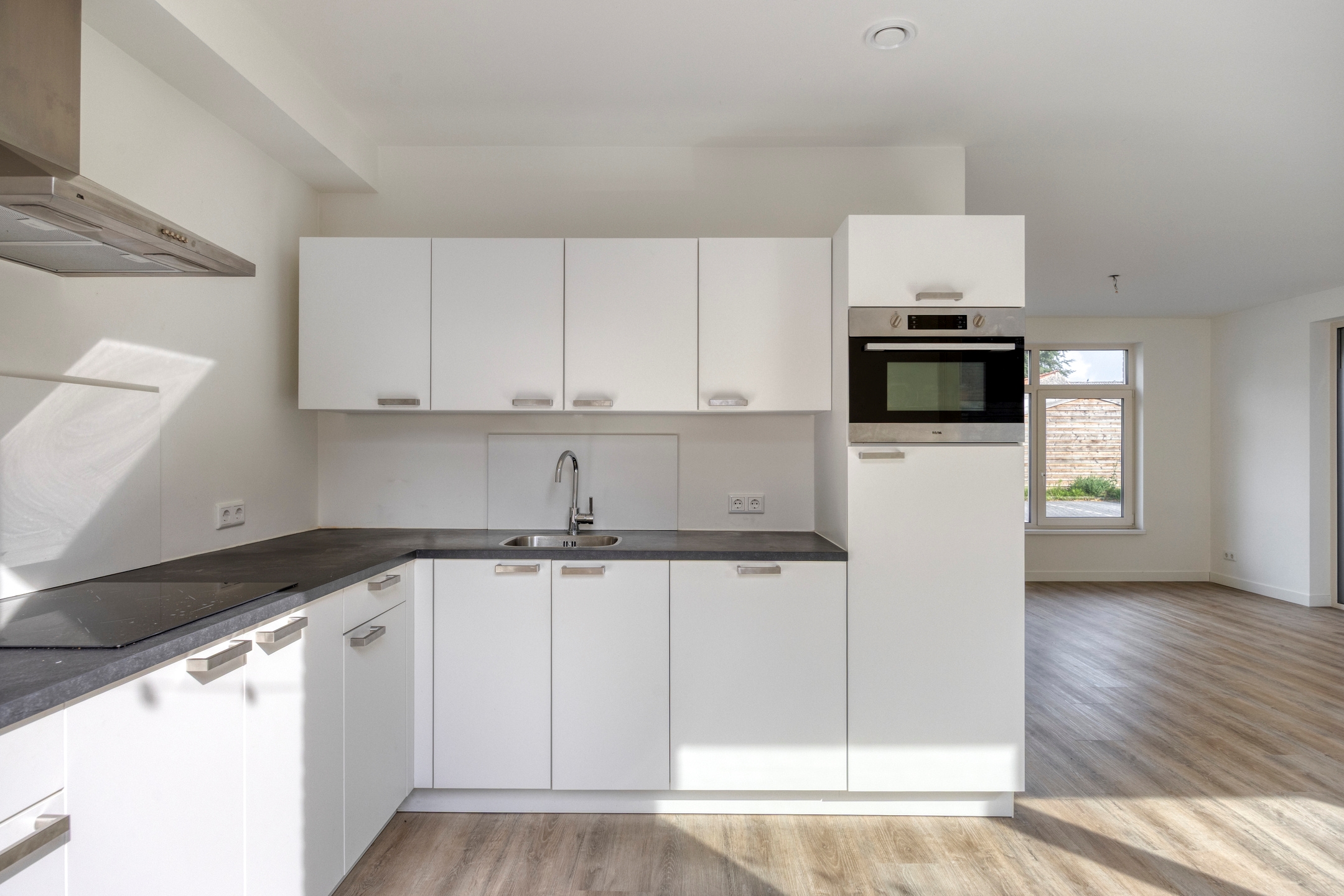 De moderne open keuken is compleet ingericht en voorzien van een inductiekookplaat, rvs-afzuigkap, combi-oven, koelkast en vaatwasser. Deze praktische indeling zorgt voor optimaal kookgemak en een fijne verbinding met de woonkamer. Via een loopdeur in de keuken bereikt u de achtertuin.
