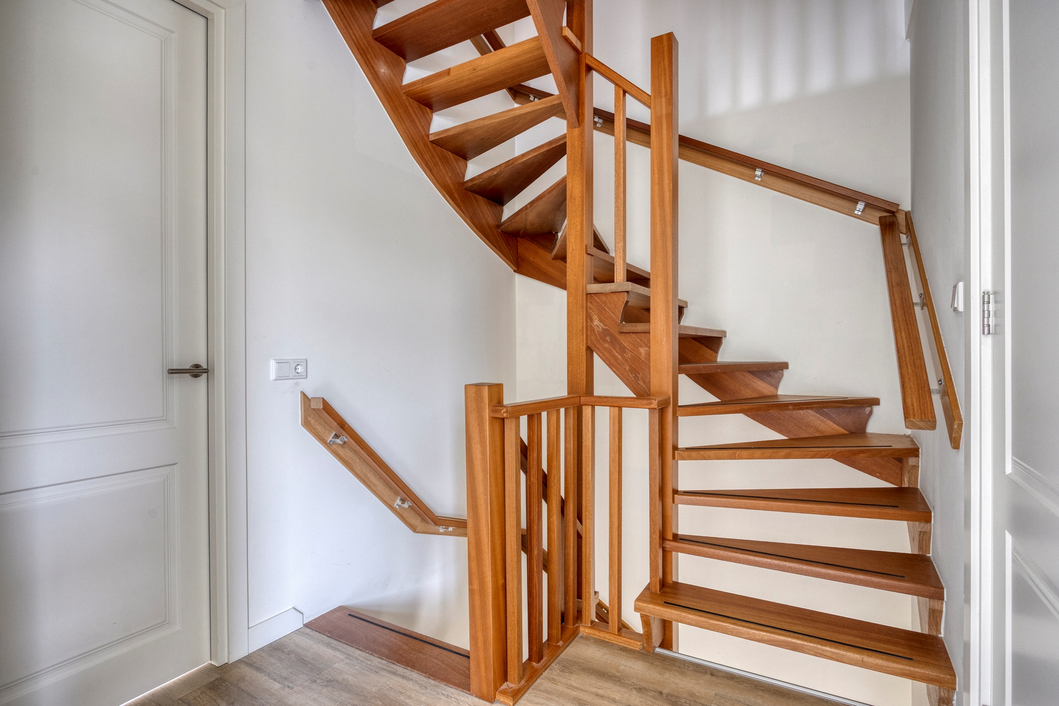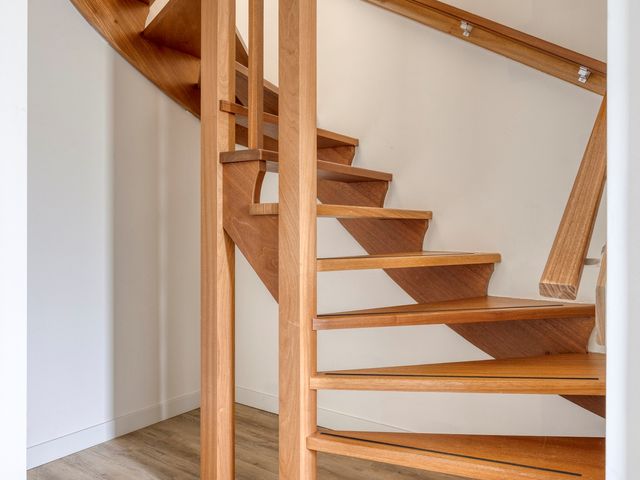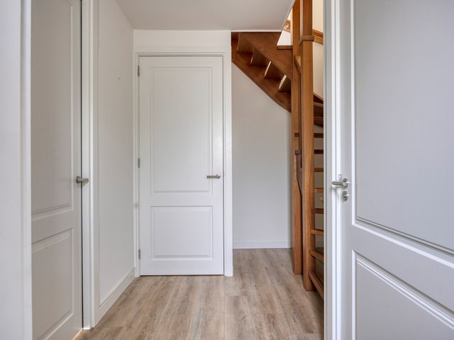 Vanuit de ontvangsthal heeft u toegang tot de woonkamer, het toilet, een vaste kast en de stijlvolle hardhouten trapopgang naar de eerste verdieping.