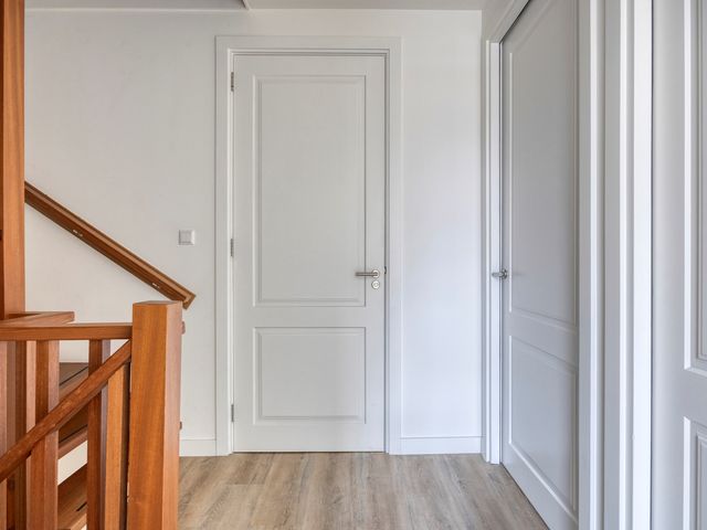 De overloop biedt toegang tot drie slaapkamers, de badkamer en de trapopgang naar de zolderverdieping. Op deze verdieping ligt, met uitzondering van de badkamer, een fraaie en warme pvc-vloer.