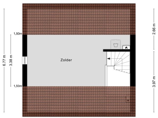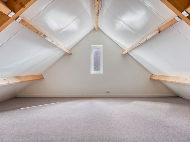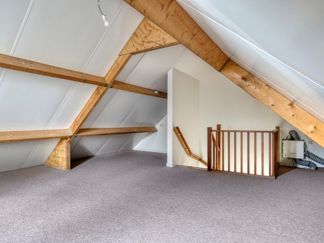 Op de ruime zolder bevinden zich de cv-installatie en wasmachine-/drogeraansluiting. Deze veelzijdige ruimte leent zich uitstekend als royale slaapkamer, maar kan ook perfect dienen als extra opbergruimte.