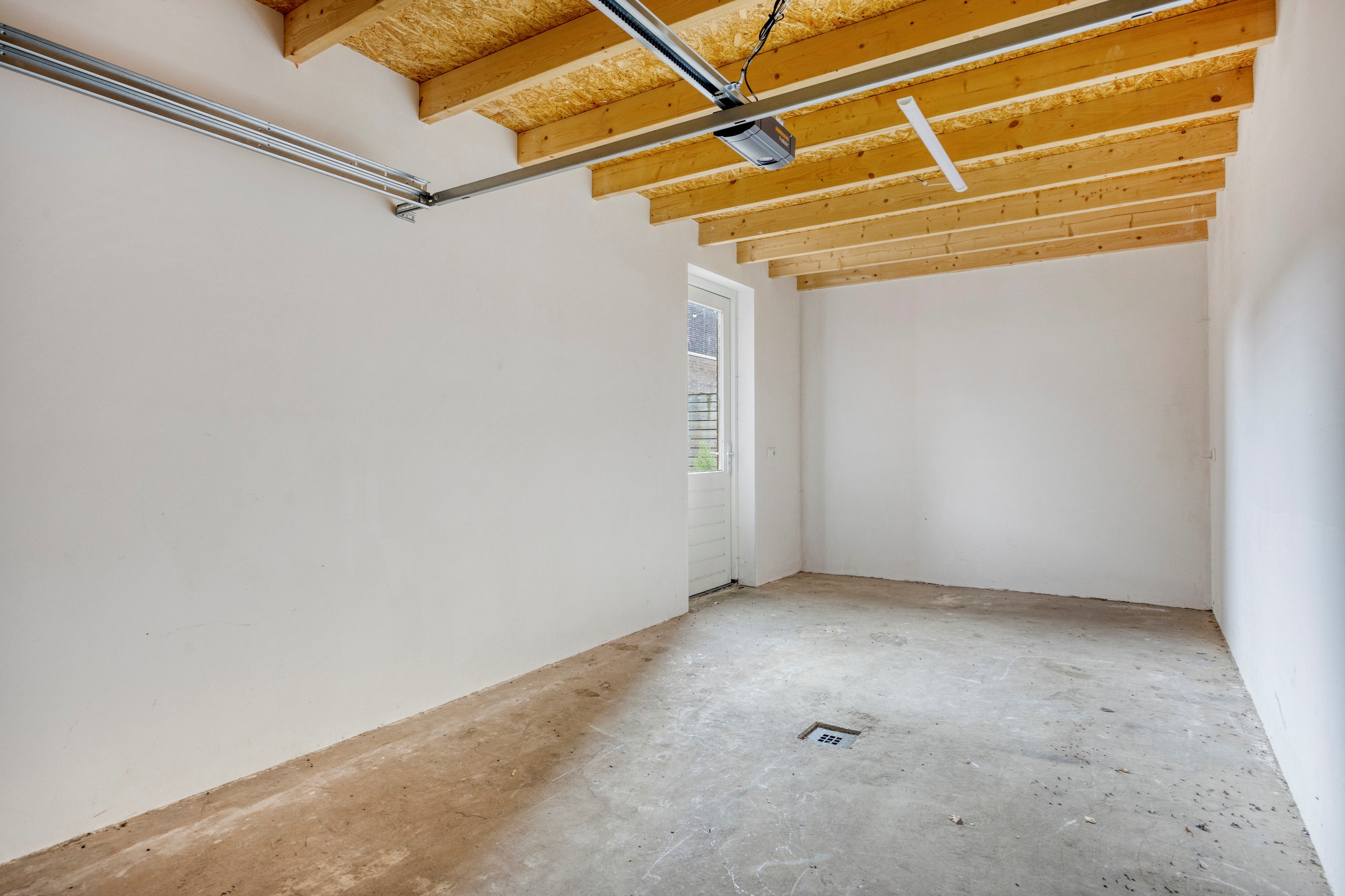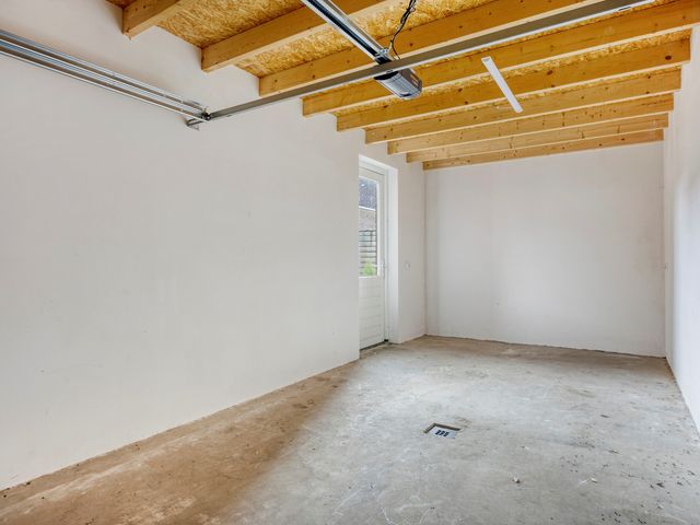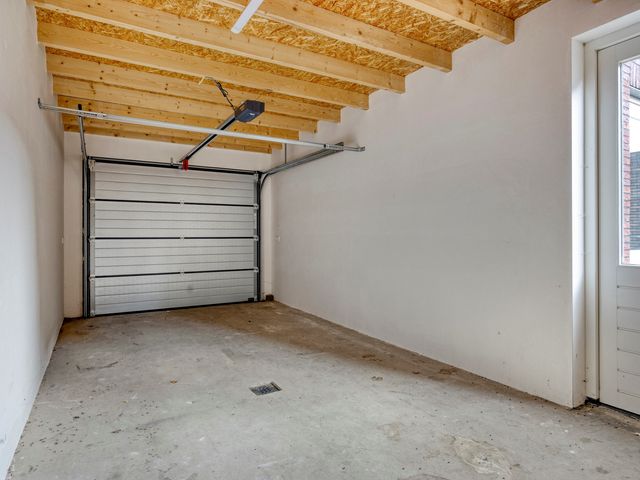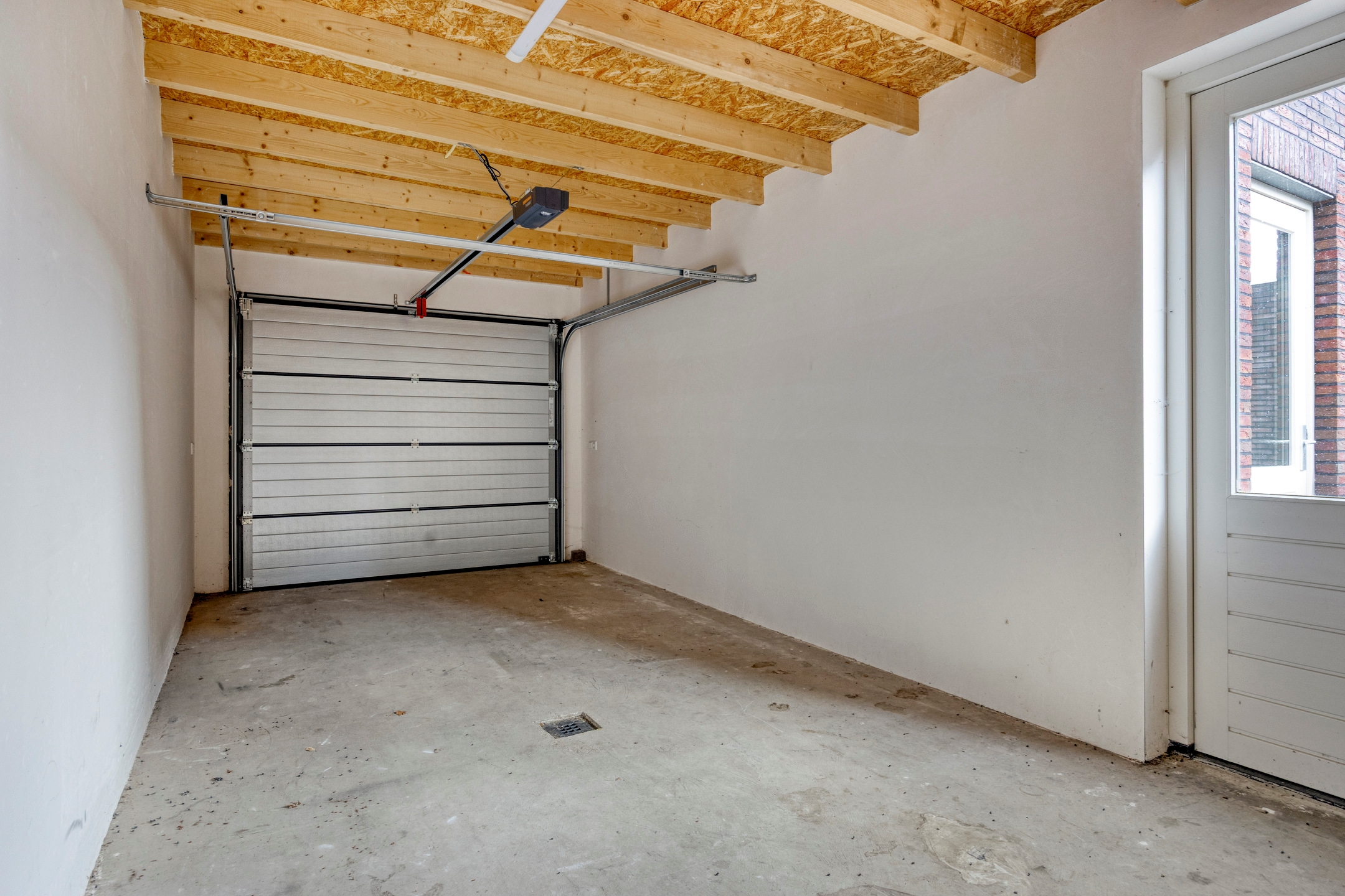Vanuit de tuin is de garage toegankelijk, die is voorzien van elektra voor extra gemak.