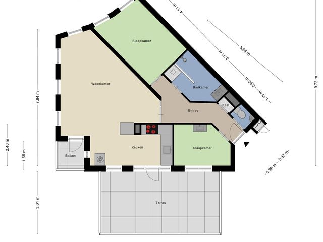 - Keuken met loopdeur naar het grote en enige dakterras van het complex