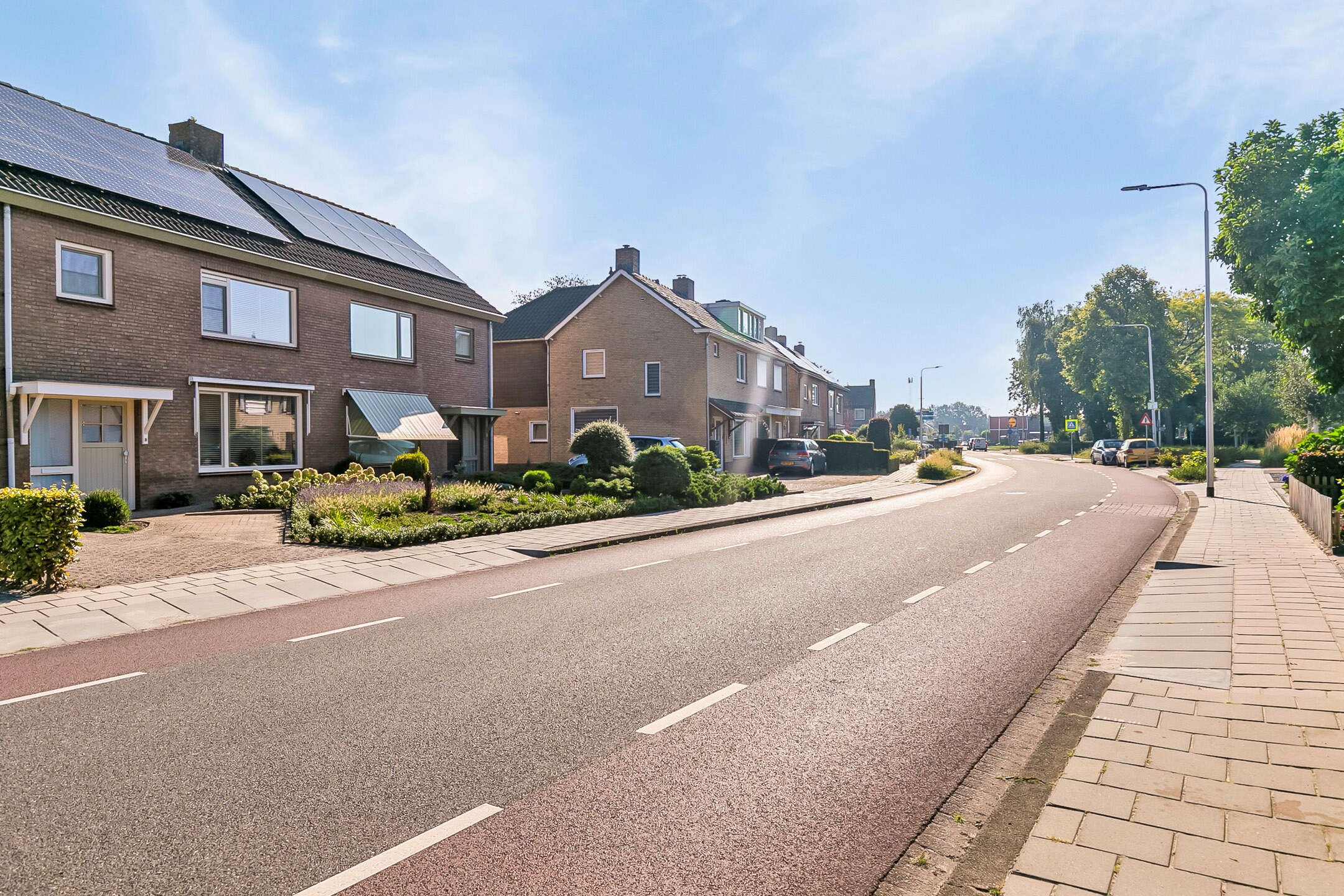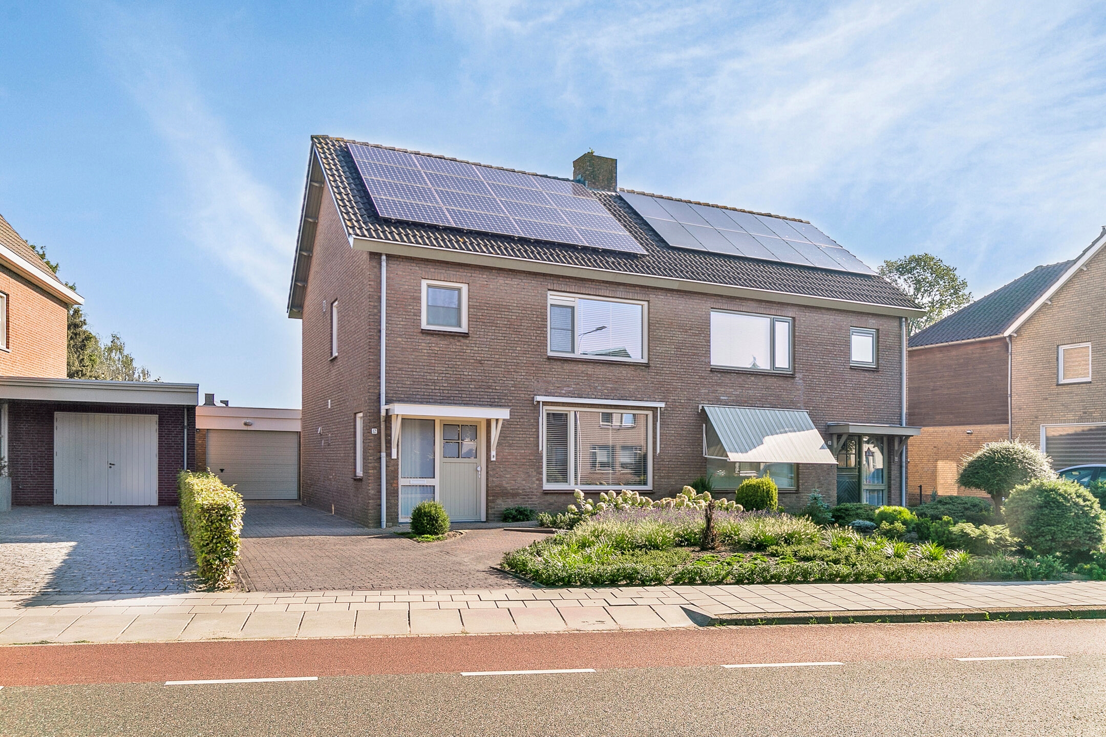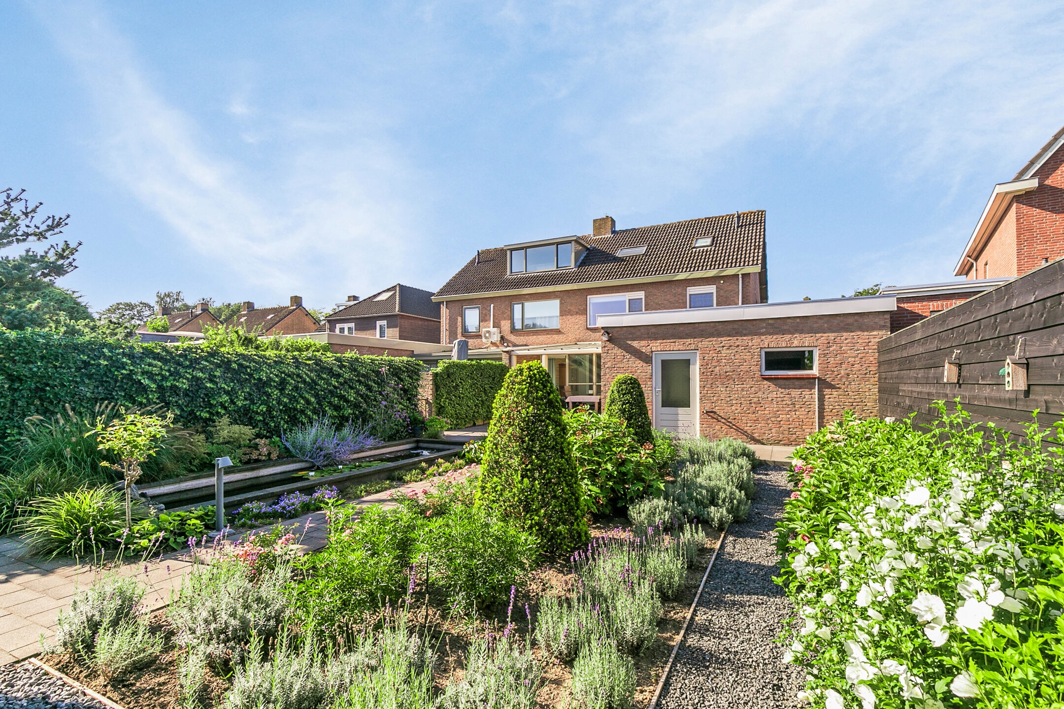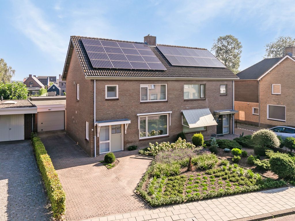 Bij aankomst op de oprit valt direct de verzorgde uitstraling van de woning op, met een keurig aangelegde voortuin, een ruime oprit en de voordeur in het zicht.