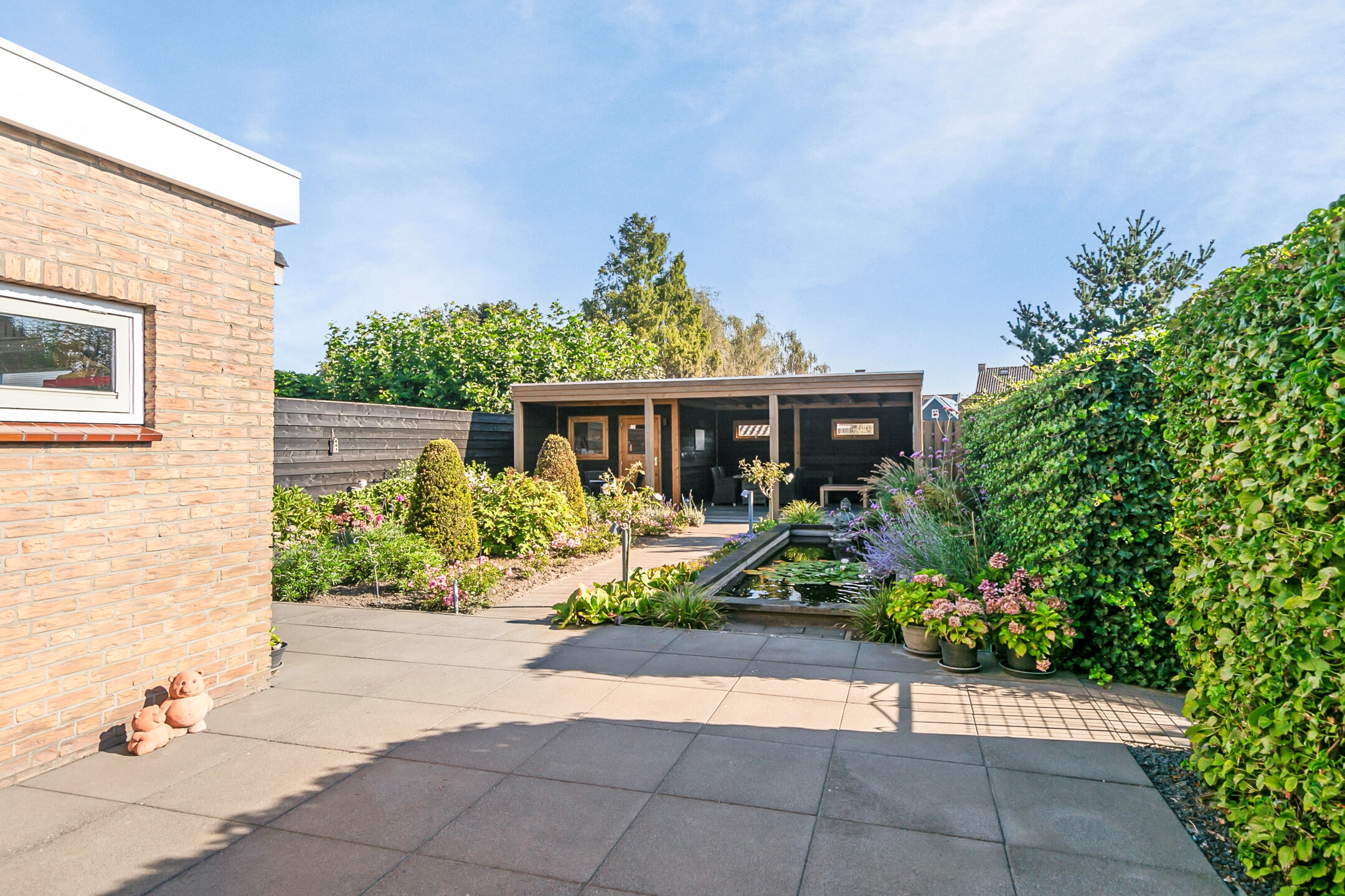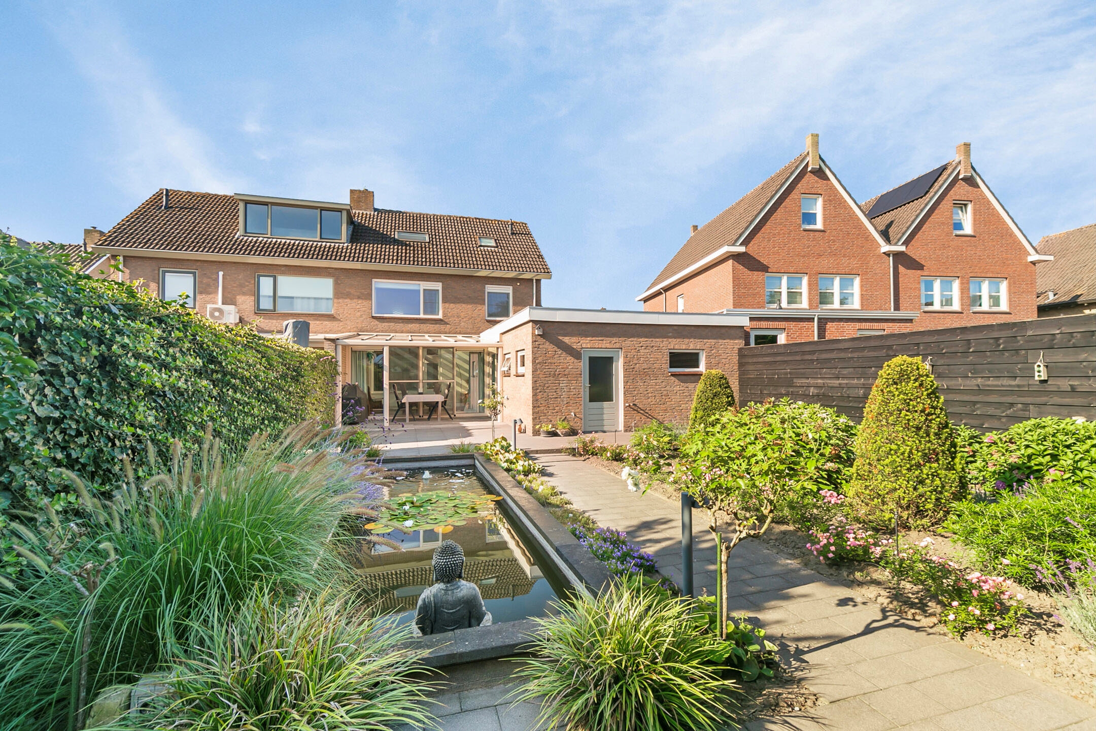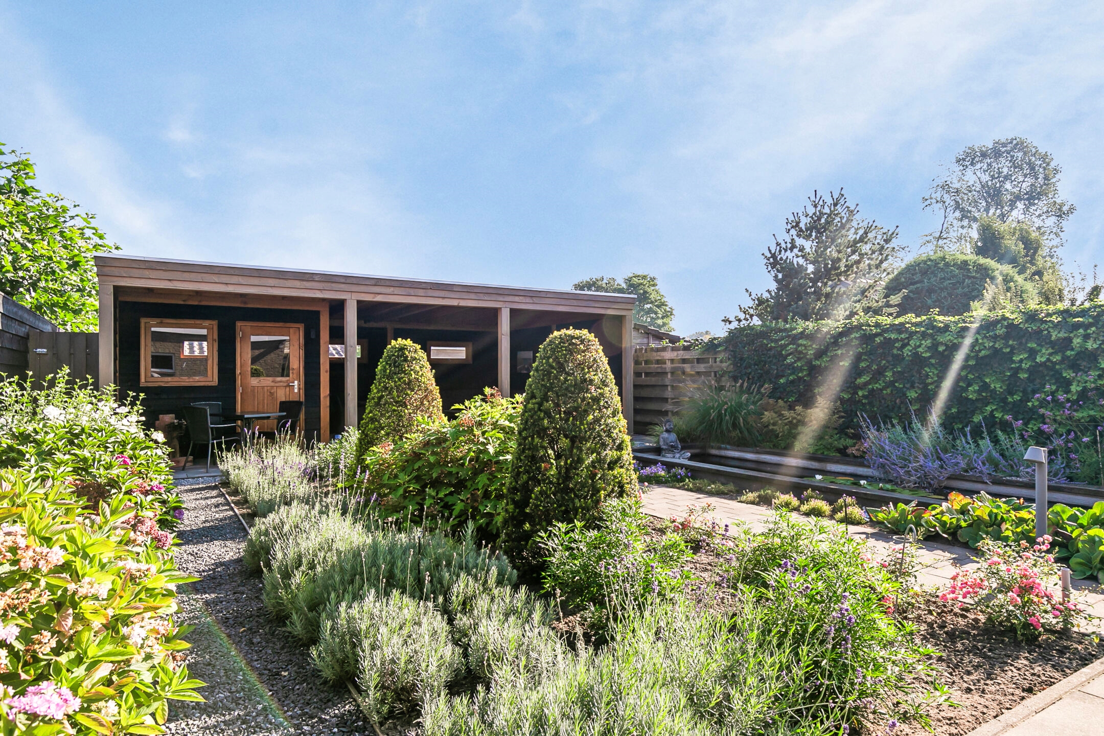 - Royale zonnige achtertuin met veel privacy en een prachtige overkapping