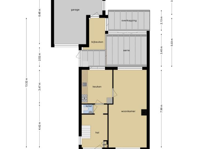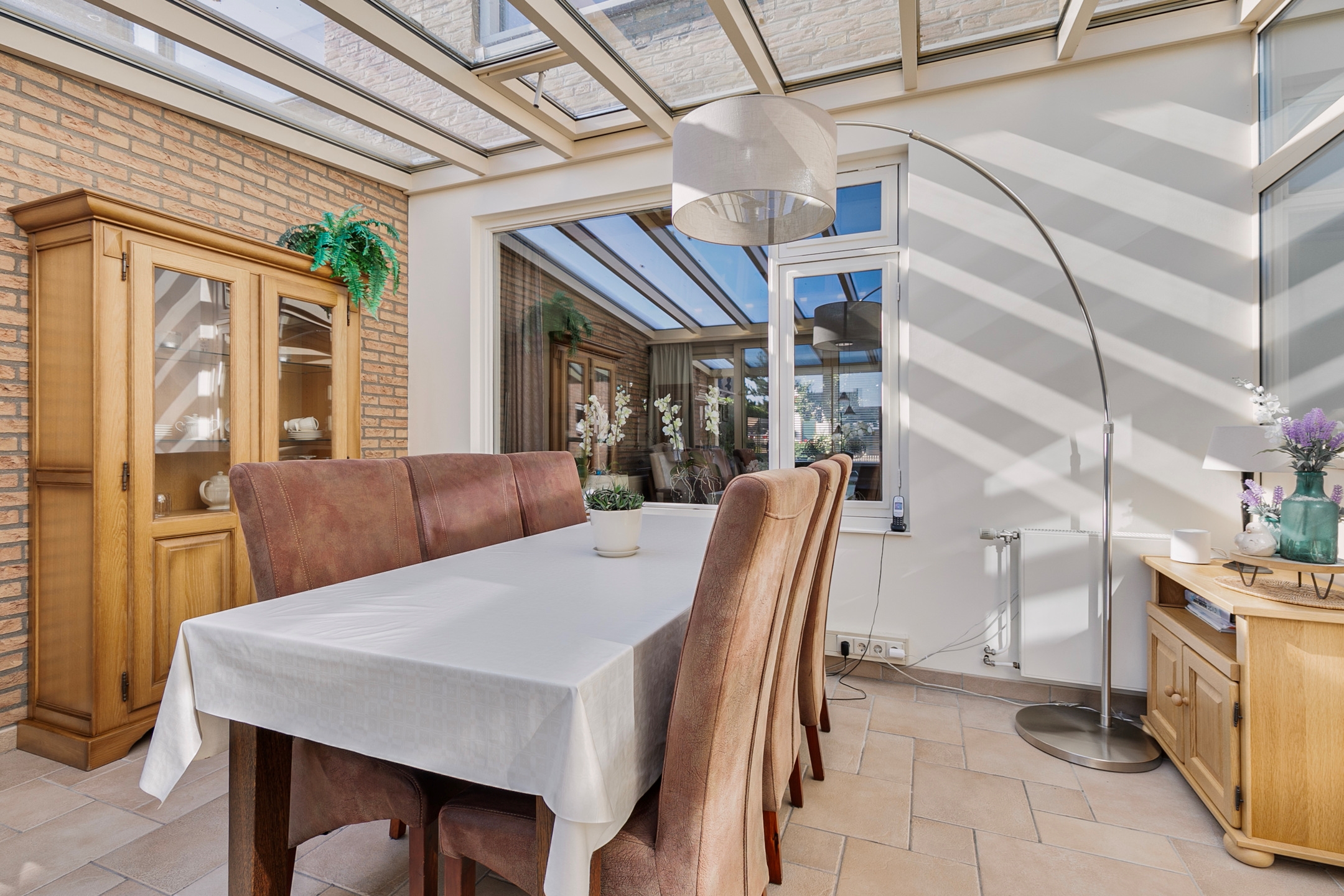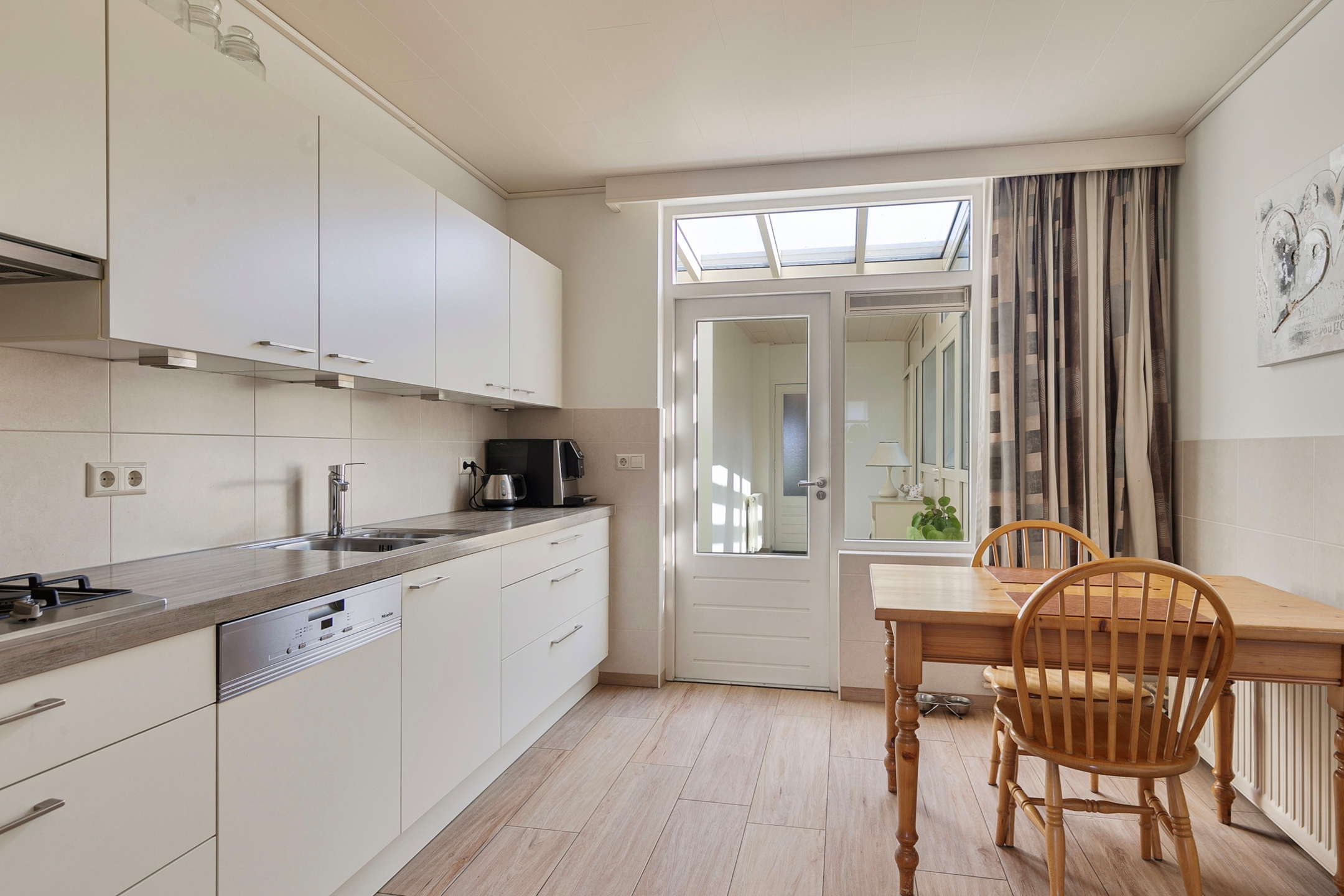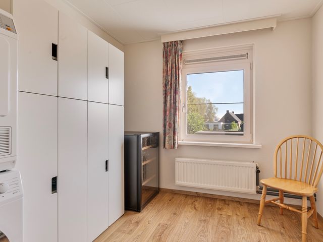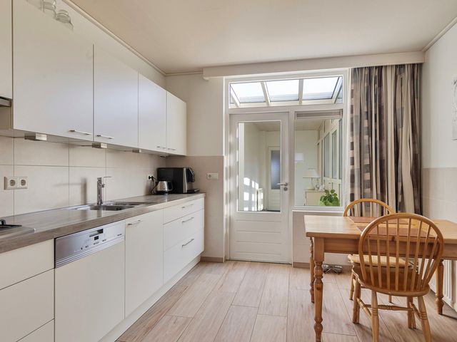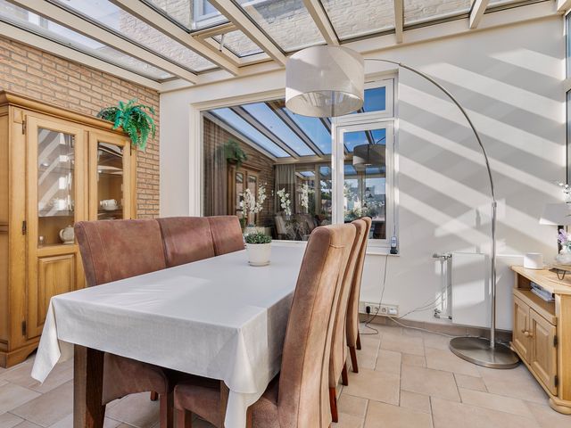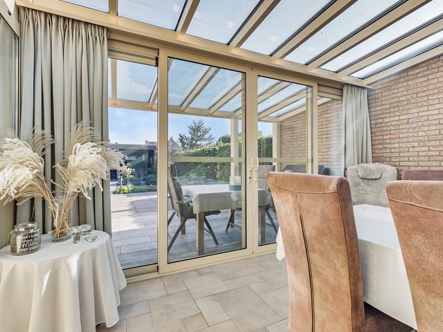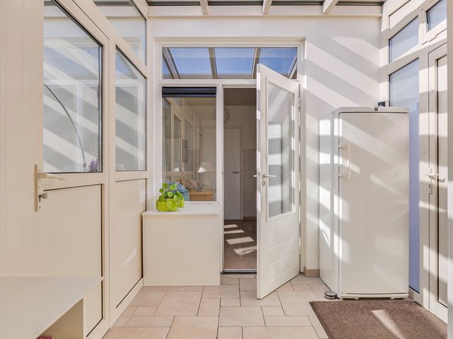 De bijkeuken is bereikbaar vanuit de keuken en vanuit de bijkeuken kom je in de lichte serre. Hier geniet je van een prachtig uitzicht op de fraai aangelegde tuin, die in elk seizoen een heerlijke plek is om van te genieten.