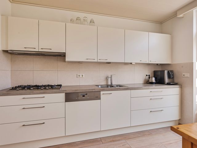 Zo is er een 5-pits gaskookplaat, afzuigkap, vaatwasser, koelkast en een combi-oven.