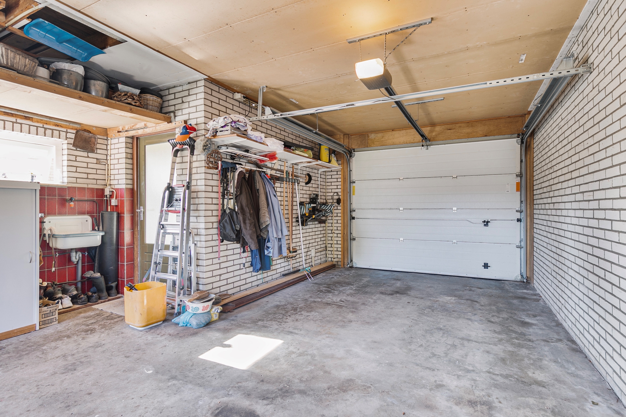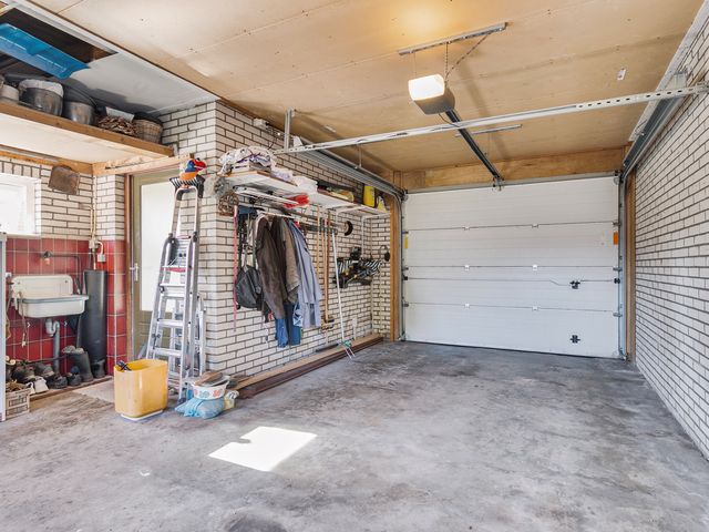 De ruime inpandige garage is volledig uitgerust met een elektrisch bedienbare sectionaaldeur, elektriciteit en wateraansluiting. Deze veelzijdige garage is perfect geschikt voor het parkeren van een auto, maar biedt ook talloze mogelijkheden voor andere doeleinden, zoals een hobbyruimte of kantoorruimte.