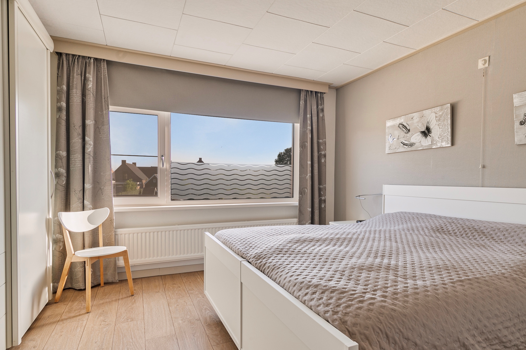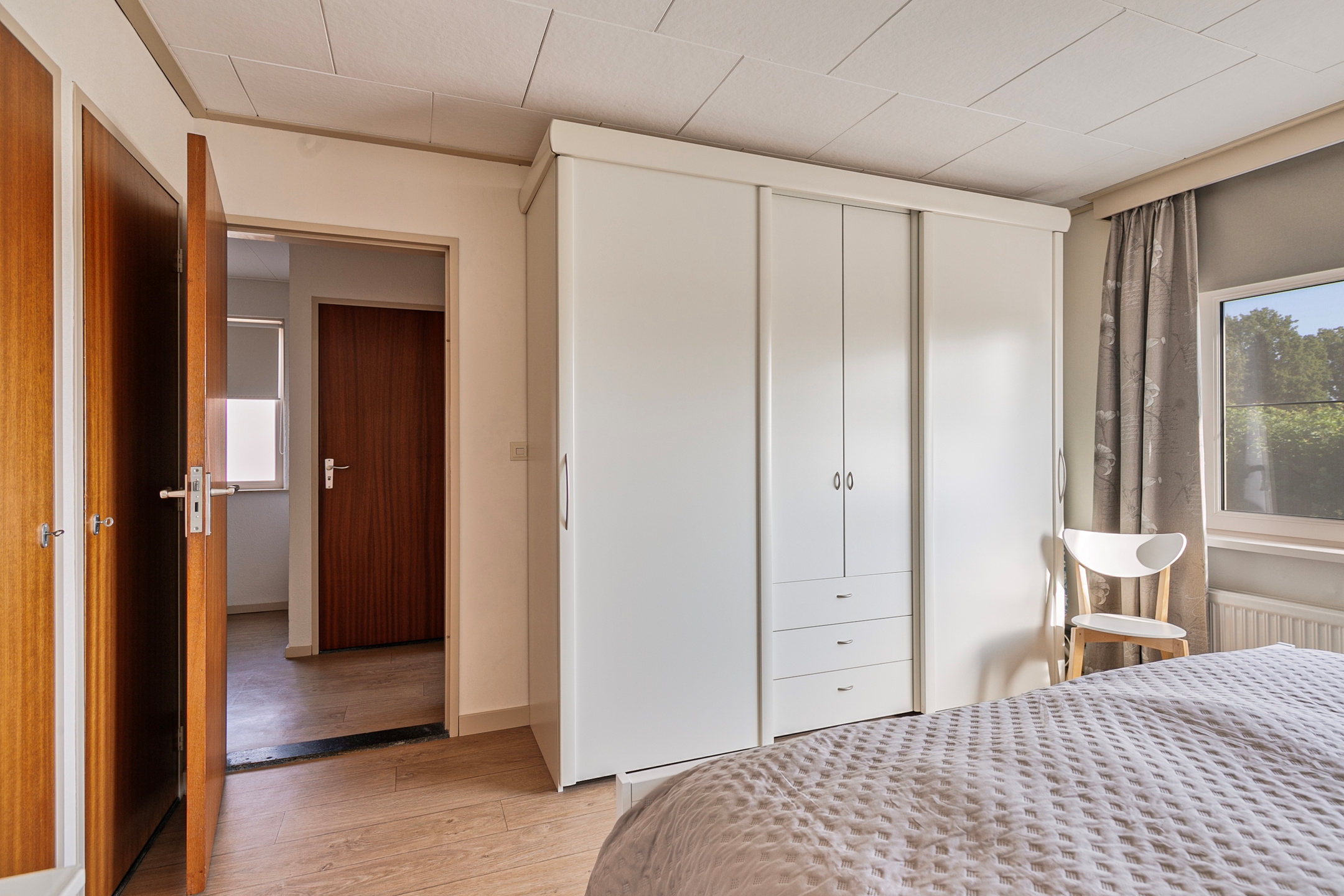 Alle slaapkamers zijn ruim opgezet en profiteren van veel natuurlijk licht door de grote ramen. De wanden zijn netjes afgewerkt met behang, wat zorgt voor een verzorgde uitstraling. De ramen zijn uitgerust met een draai-/kiepmechanisme en vliegenhorren. Twee van de slaapkamers zijn uitgerust met inbouwkasten, perfect voor het netjes opbergen van je spullen.