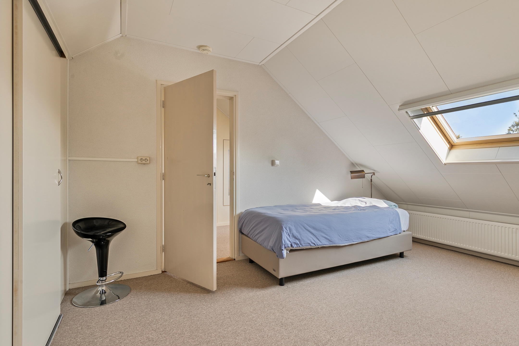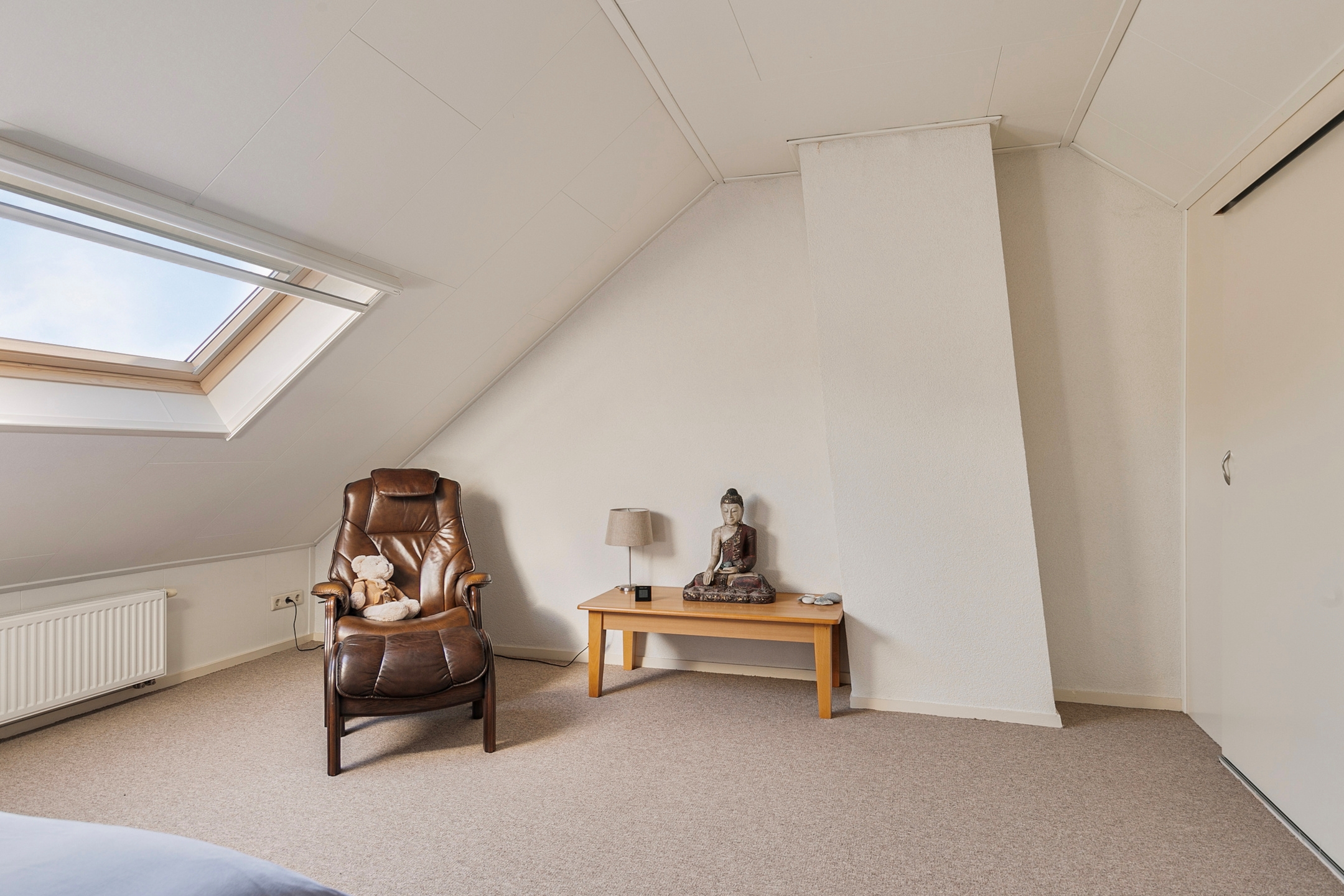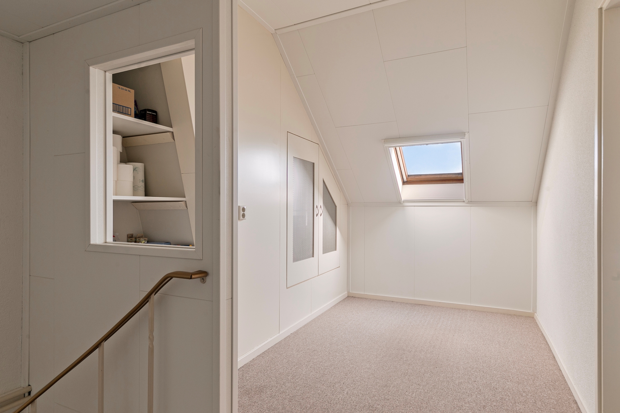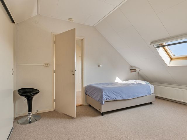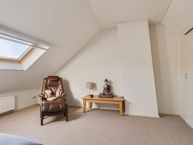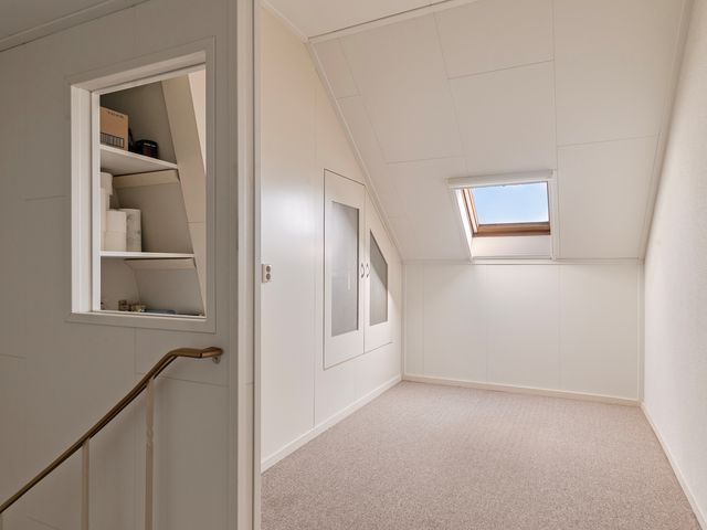 Via de trap bereik je de ruime zolderverdieping. De voorzolder biedt voldoende opbergruimte achter de schuine dakwanden en hier bevindt zich tevens de CV-ketel.