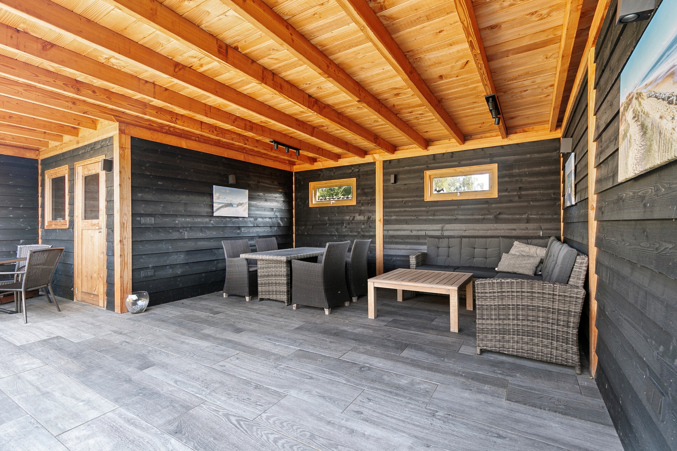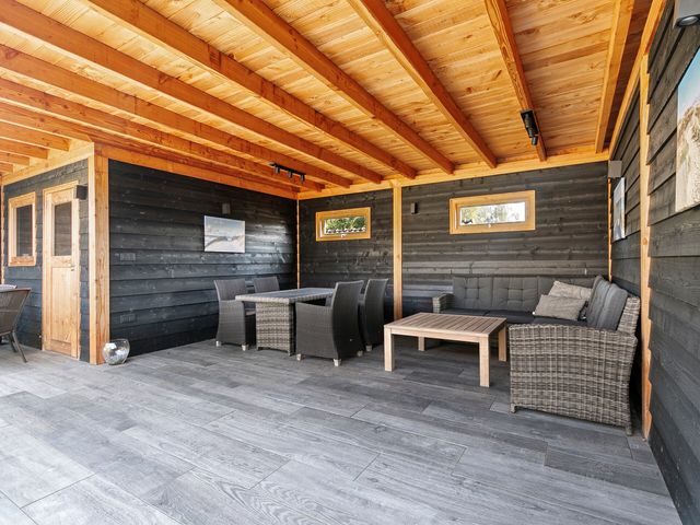 Het tuinhuisje onder de overkapping is volledig geïsoleerd met glaswol.