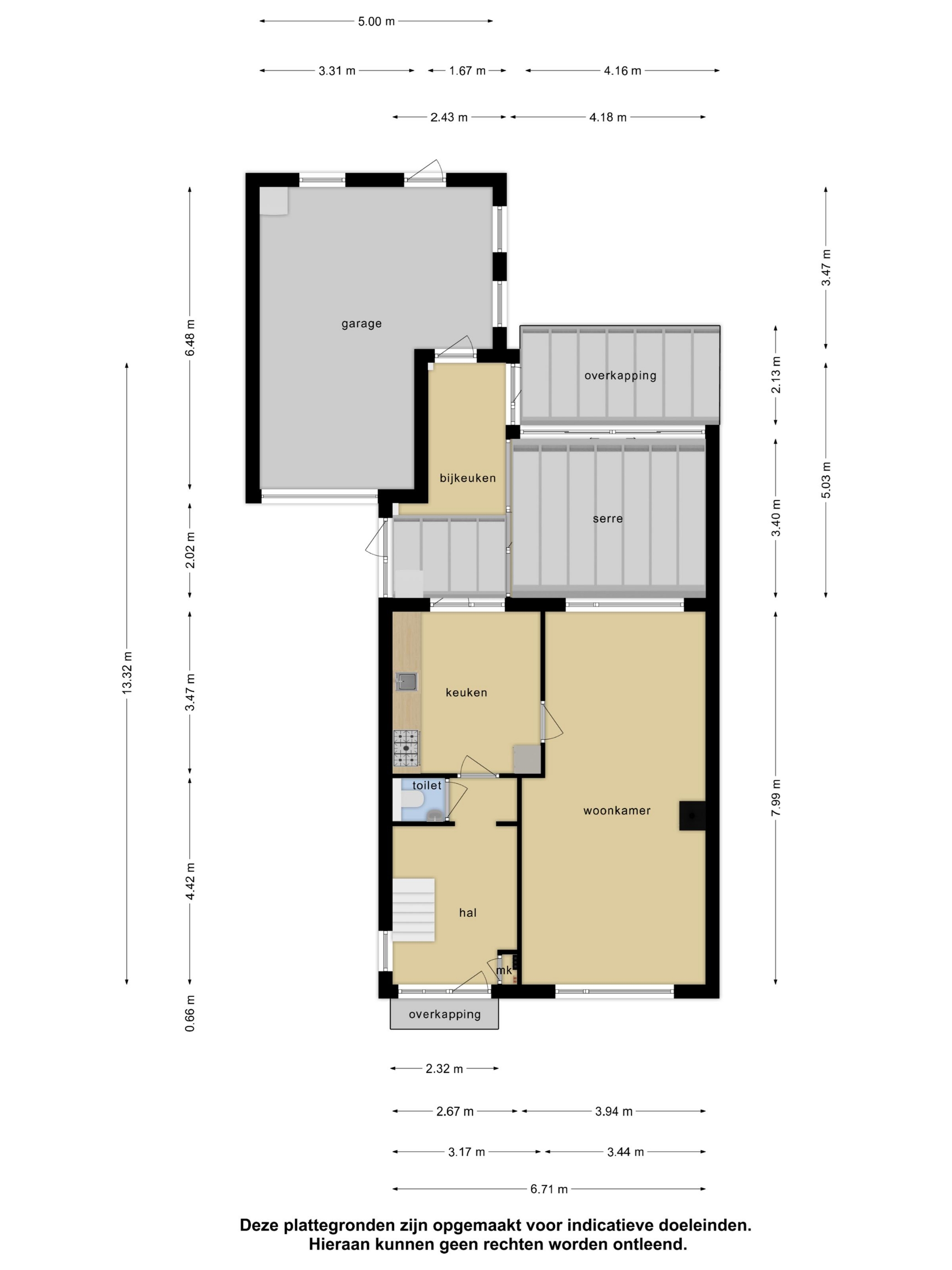 De gebruikte meetinstructie volgt de NEN2580-norm. Deze methode biedt een uniforme manier om het gebruiksoppervlak te benaderen. Door variaties in interpretatie, afronding of meetbeperkingen kunnen er toch afwijkingen ontstaan. De feitelijke situatie in het huis is leidend. De verstrekte oppervlakte-informatie is indicatief en mag niet als exact worden beschouwd. “Wat je ziet is wat je koopt” blijft het uitgangspunt.