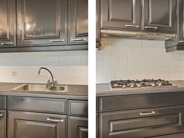 Vanuit de keuken is de bijkeuken te bereiken.