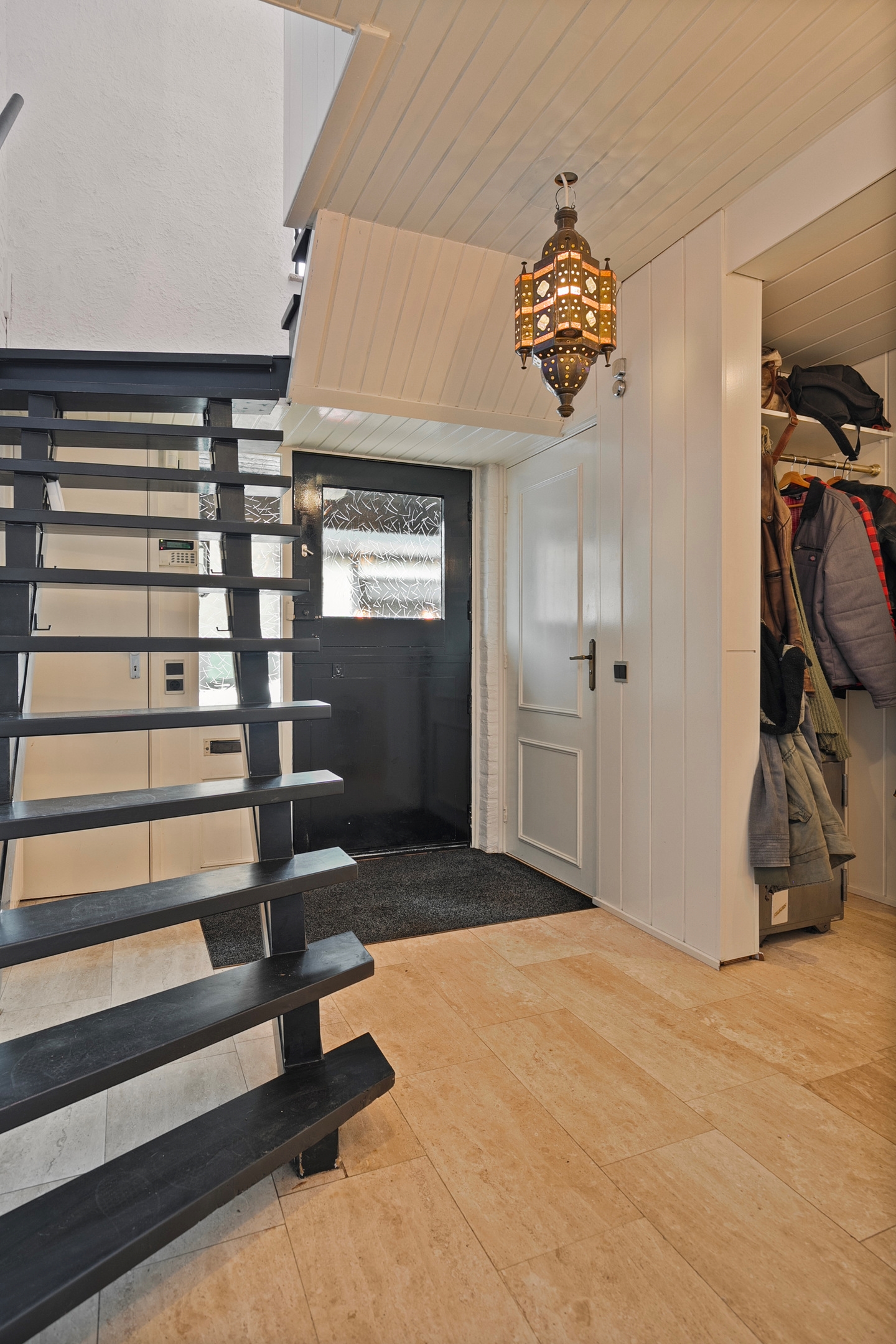 Bij binnenkomst komt u in een ruime hal met toegang tot de woon-/eetkamer, het toilet en de trap naar de bovenverdieping.