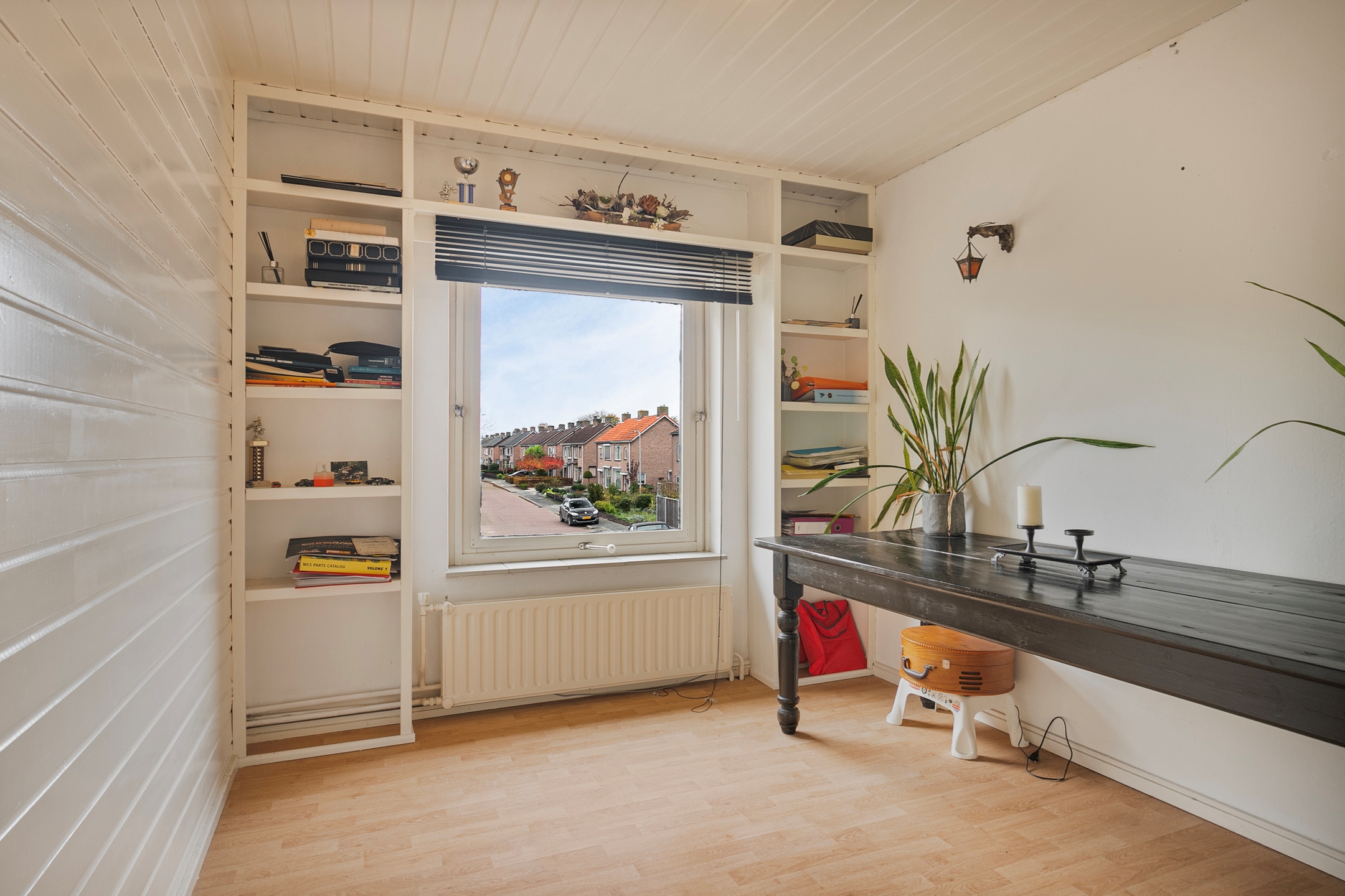 De drie ruime slaapkamers, allen afgewerkt met een nette laminaatvloer, zijn licht en ruim en perfect voor gebruik als slaap- of studeerkamer. Twee kamers beschikken over een inbouwkast.