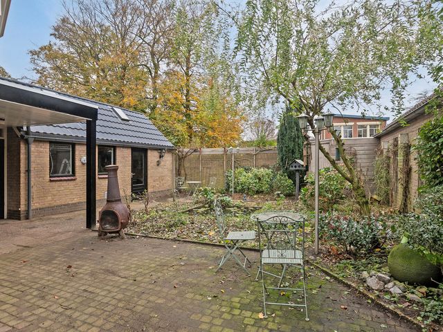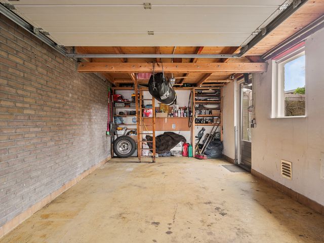 Bovendien is er nog volop opbergruimte rondom de woning; een ruime garage, een aangebouwde berging naast de woning en een houten berging achter in de tuin. Aan de voorzijde van de garage bevindt zich ook nog een carport. Kortom; voldoende ruimte voor het stallen van een auto, fietsen, gereedschap of als hobbyruimte.