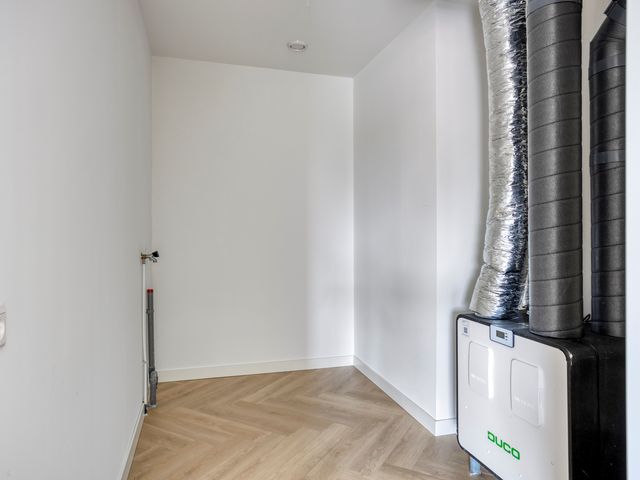 In de technische ruimte (ca. 5 m2) vindt u de opstelplaats voor de mechanische (balans)ventilatie, de verdeler van de vloerverwarming, de aansluitingen voor de was apparatuur en lekker veel praktische bergruimte.