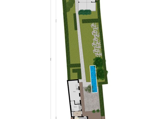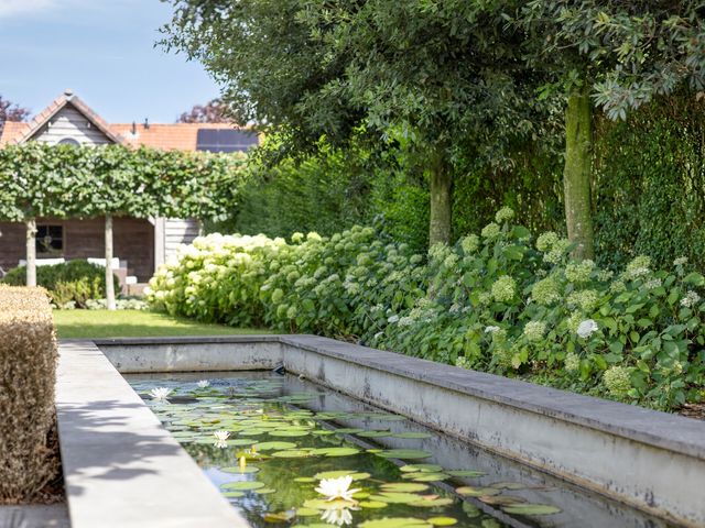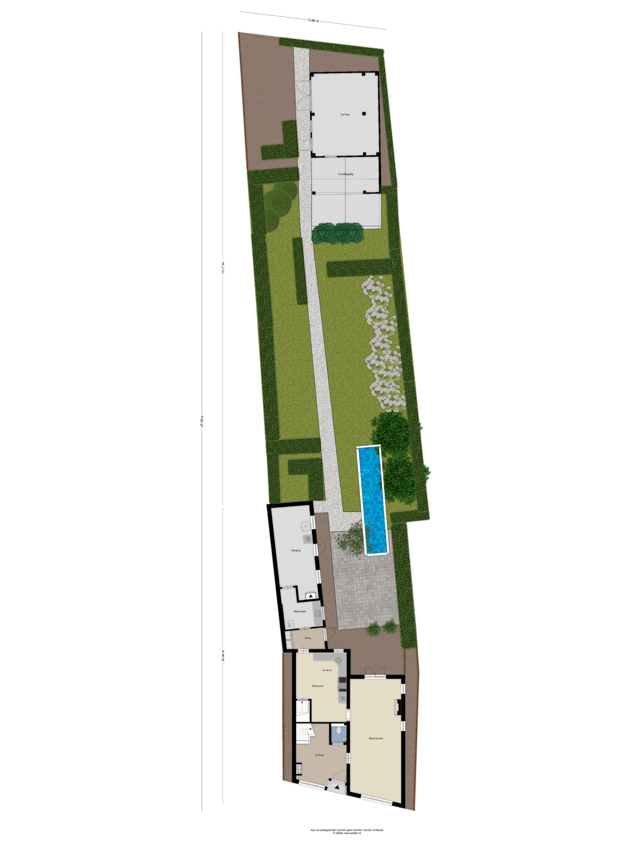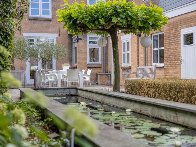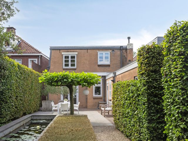 De zeer diepe achtertuin (ca. 42 m diep & ca. 9 m breed) met diverse tuinkamers, heeft een strakke vijver, een afsluitbare poort aan de voorzijde is werkelijk een plaatje. De tuin is o.a. voorzien van bestrating, grind/gazon en diverse vaste planten die ieder jaargetijde kleur geven aan de tuin.