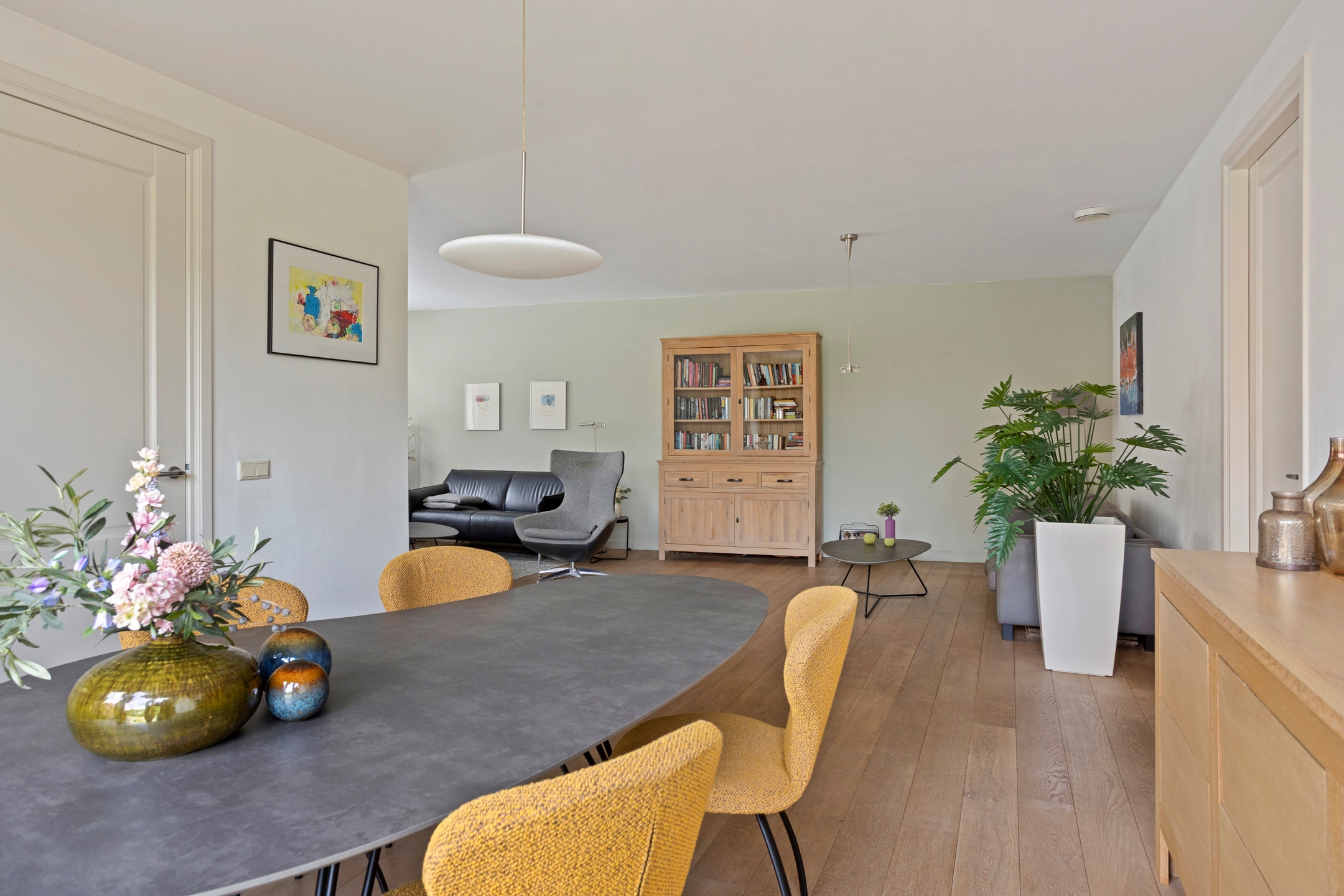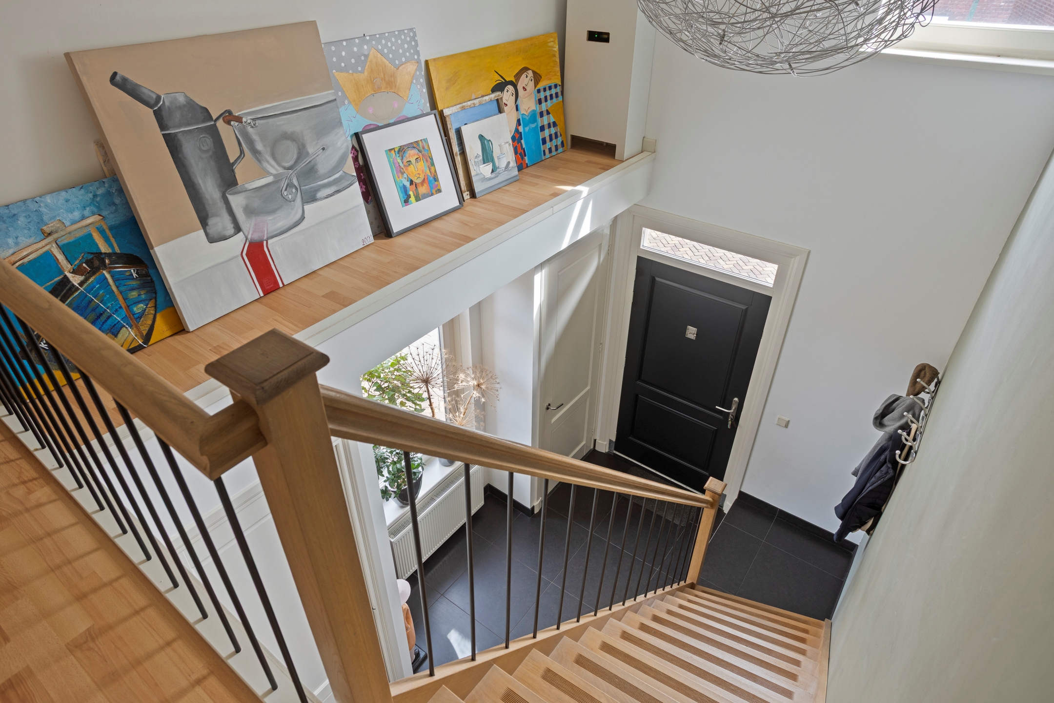 Via de voordeur betreedt u de royale hal met een vide, een zijgevelraam, een moderne meterkast en een garderobenis. Vanuit de hal zijn het vrijhangend toilet met een fonteintje en de verrassende L-vormige living te bereiken. De living heeft een fraaie glazenpui met o.a. openslaande tuindeuren. Via de L-vormige living is de aantrekkelijke woon annex leefkeuken toegankelijk.