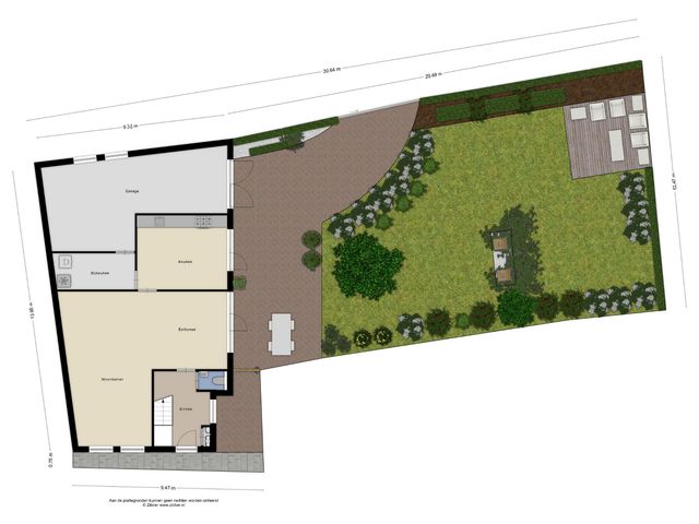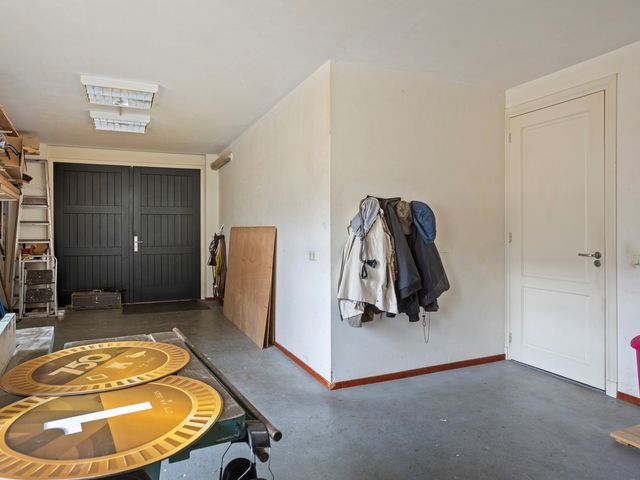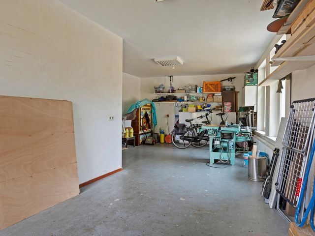 De praktische bijkeuken heeft een was en drogeraansluiting en een verbindingsdeur naar de multifunctionele L-vormige garage. Deze schitterende ruimte, ca. 3.00/4.50x9.25 m, met 2 zijgevelramen is eenvoudig, perfect te gebruiken bijv. als kantoor/praktijk, een mantelzorg ruimte, een hobbyruimte, maar ook geschikt voor een slaapkamer met een badkamer en een kleedkamer.